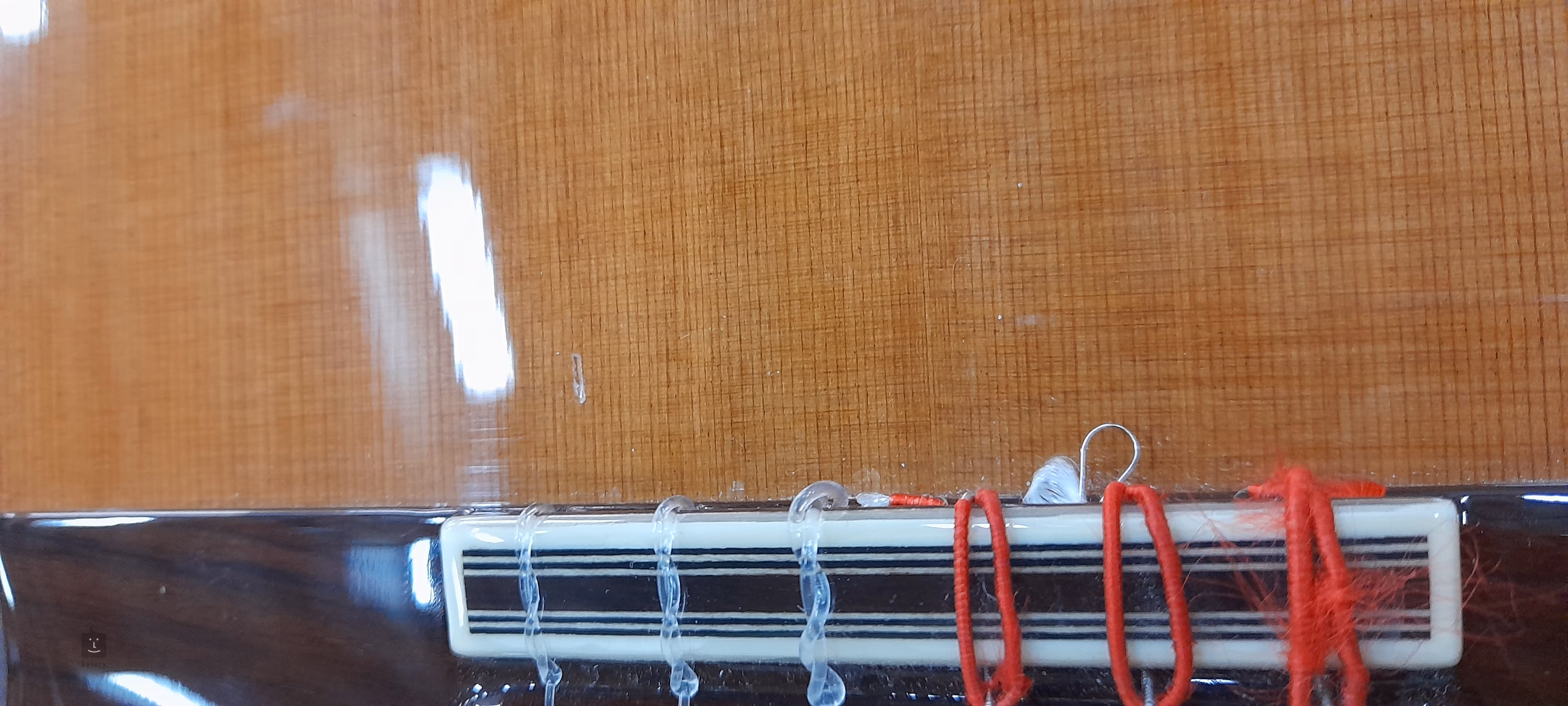 For the saddle and nut, melamine has been used, a material which highly transmitting sound. A sound which could be described as more defined, melodious and with a constant tone throughout the fingerboard. An example of this is the sound quality of the first three strings on the 12th fret.