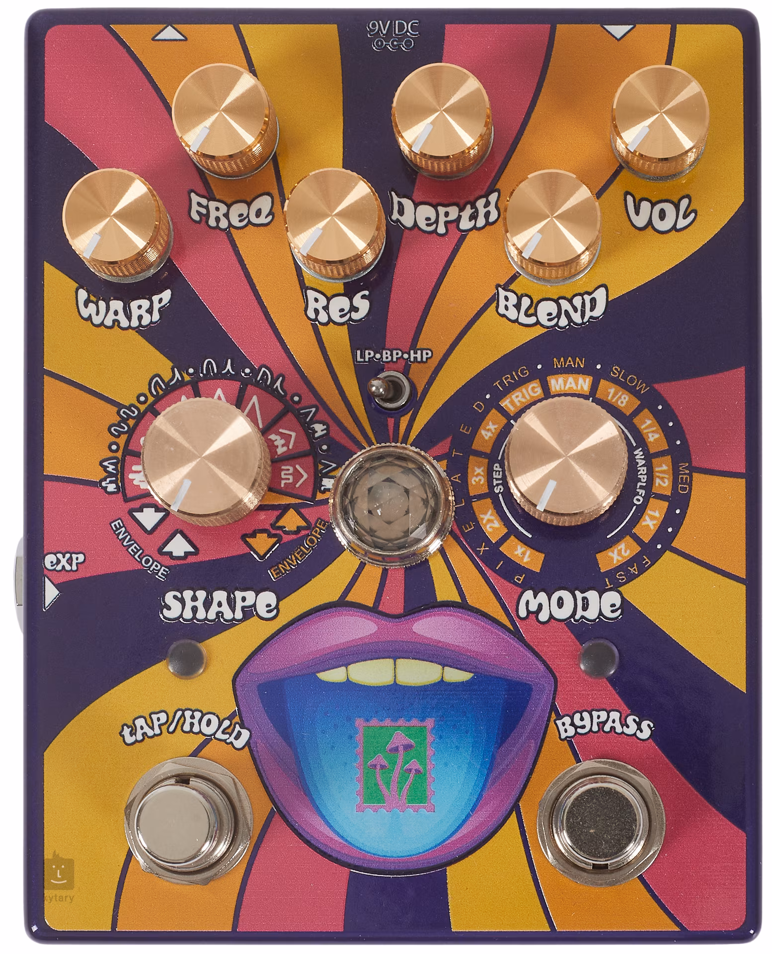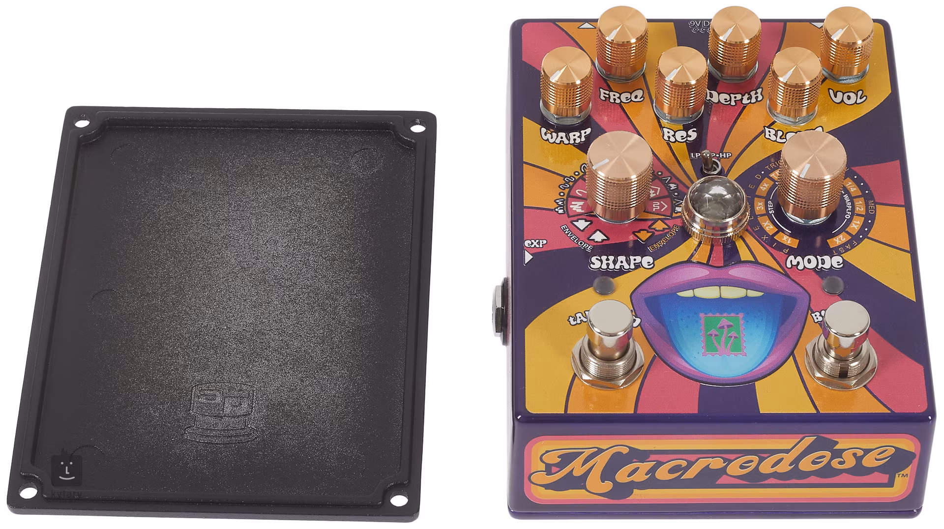 Der Macrodose-Pedaleffekt der amerikanischen Marke Allpedal ist ein Hüllkurvenfilter mit digitaler Steuerung einer rein analogen Schaltung, elf Operationsmods und sieben LFO-Kurven, mit denen Sie klassische Hüllkurvenfiltersounds außergewöhnlich detailliert gestalten sowie originelle Groove-Effekte erzeugen können. Macrodose bietet klassische Auto-Wah-Effekte mit einer Auswahl an LFO-Kurven, Sample/Hold-, Step-Filter-, Random-Sample/Hold- und Pixelated-Filter-Funktionen. Individuelle Reglereinstellungen bestimmen den LFO-Frequenzbereich, das Clipping der LFO-Frequenz, die LFO-Oszillationsgeschwindigkeit im manuellen Modus, das Verhalten der Tiefpass-, Bandpass- und Hi-Pass-Filter, die LFO-Kurve, die LFO-Trigger-Mods und die Ausgangslautstärke.