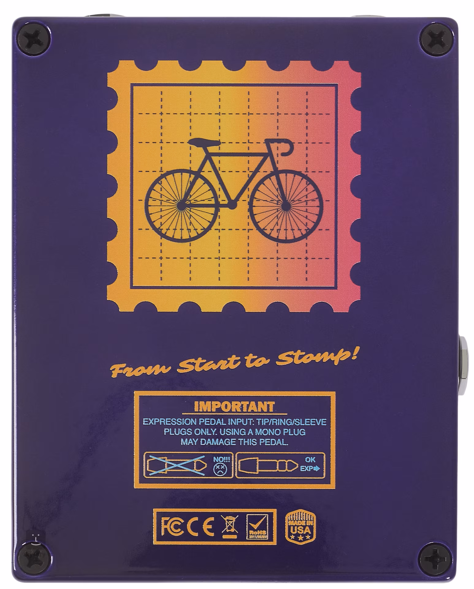 Ein externes Expression-Pedal kann an das Effektpedal angeschlossen werden. Die Box ist als True-Bypass verdrahtet. Für die Stromversorgung des Pedaleffekts ist ein 9V DC Center Negative Adapter erforderlich, eine Batterieversorgung ist nicht möglich.