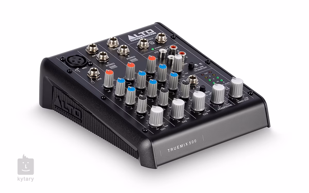 Das Alto TrueMix 500 ist ein analoges Mischpult mit fünf Kanälen, USB-Eingang, fünf Eingängen, einem Line-Eingang mit 18-V-Phantomspeisung und klaren Bedienelementen, die Ihnen die volle Kontrolle über den Klang von Instrumenten und Gesang in intimeren Umgebungen geben. Jeder der fünf Kanäle verfügt über einen Zwei-Band-EQ sowie Gain- und Pan-Regler. Die Haupt-, Kopfhörer- und Bandausgänge ermöglichen es Ihnen, die Lautstärke an die Besonderheiten des verwendeten Geräts anzupassen. Wenn man dann noch die kompakte Größe und die robuste Bauweise des Mischpults berücksichtigt, gibt es keinen Grund, den TrueMix 500 nicht als ständigen Begleiter für jede Gelegenheit zur Hand zu haben.
