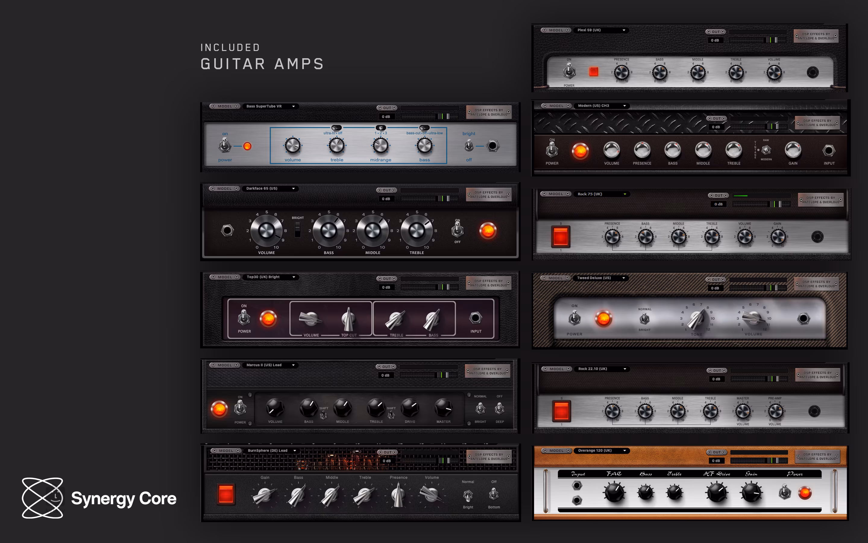 36 kostenlose Plug-Ins in Studioqualität Discrete 4 Synergy Core enthält 36 leistungsstarke Plugins, die völlig kostenlos sind, wie z. B. Dynamikprozessoren (Stay-Levin, Power Gate, Power Ex, POWERFFC, X903, VCA-160, FET-A76), Equalizer (Clear Q, VEQ-HLF, VEQ-1A,VMEQ-5), Mikrofonvorverstärker (BA-31, GYRAF GYRATEC IX), Gitarren-/Bass- und Lautsprechersimulationen (SHRED GUITAR CABINET, SHRED GUITAR AMPS), AURAVERB Digital Reverb und vieles mehr.