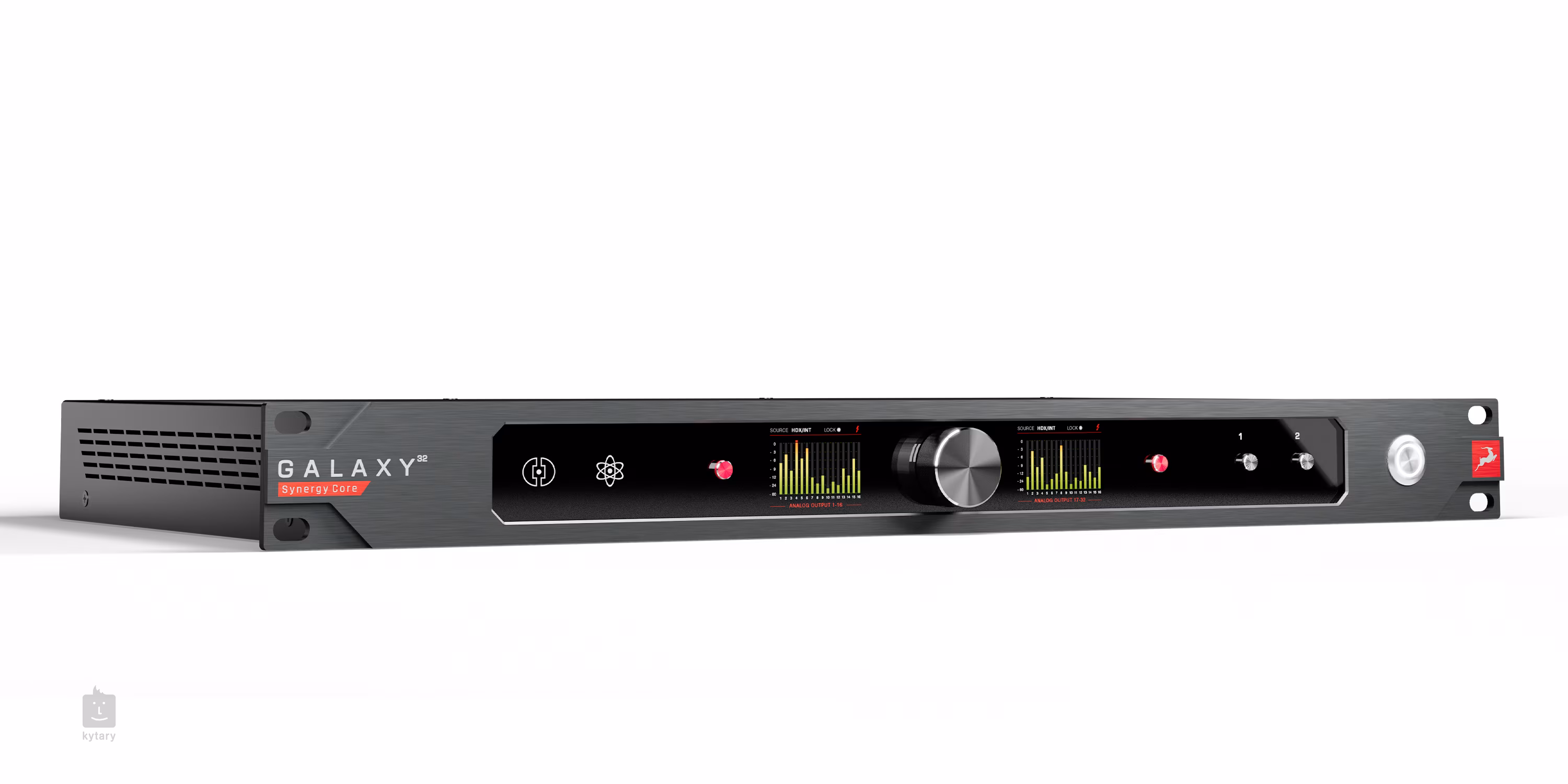 Neben der hervorragenden Klangqualität und den intuitiven Bedienelementen verfügt das Galaxy 32 Synergy Core auch über einen AD/DA-Wandler mit einem Dynamikbereich von bis zu 124 dB, so dass Sie alte analoge Dateien in moderne digitale Formate konvertieren können, wo Sie sie mit verschiedenen Filtern und Plug-ins von störendem Rauschen befreien und in ihr ursprüngliches analoges Format zurückverwandeln können, damit die Aufnahme nicht ihre ursprüngliche Patina und Haptik verliert. Auf der Vorderseite befinden sich zwei übersichtliche Displays zur Anzeige der Eingangssignalwerte und ein intuitives Bedienfeld zur einfachen Einrichtung der Soundkarte. Die Rückseite erweitert die flexiblen Anschlussmöglichkeiten des Galaxy 32 noch weiter und bietet einen Stereoausgang für Studiomonitore, acht analoge DB25 In/Out-Anschlüsse für 32 Kanäle, zwei RJ45-Anschlüsse für primäre und sekundäre Dante-Verbindungen, zwei HDX-Anschlüsse, einen Thunderbolt 3-Anschluss, zwei MADI-Anschlüsse, zwei S/PDIF-Anschlüsse, ADAT oder zwei WC-In- und zwei WC-Out-Anschlüsse.