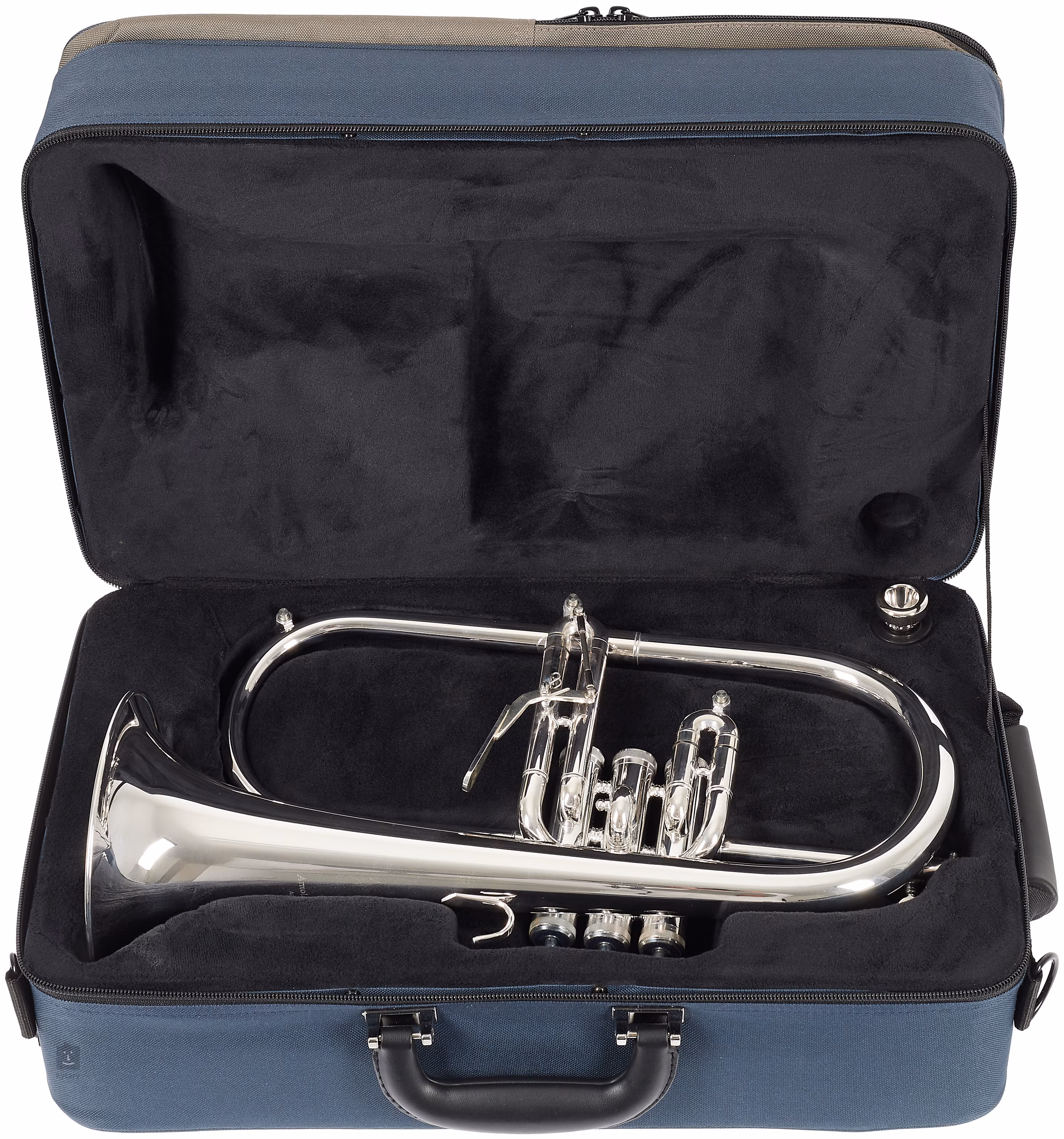 Der Flügel AFH-655S verfügt über einen Messingkorpus, eine versilberte Oberfläche, pakfong, d.h. Nickel-Messing, Kolbenmechaniken, zwei Wasserventile im "Amado-Stil", einen Abzug am dritten Stimmgerät und ein Arnolds & Sons 7C-Griffbrett. Das Flügelhorn wird in einem Komfortkoffer geliefert.