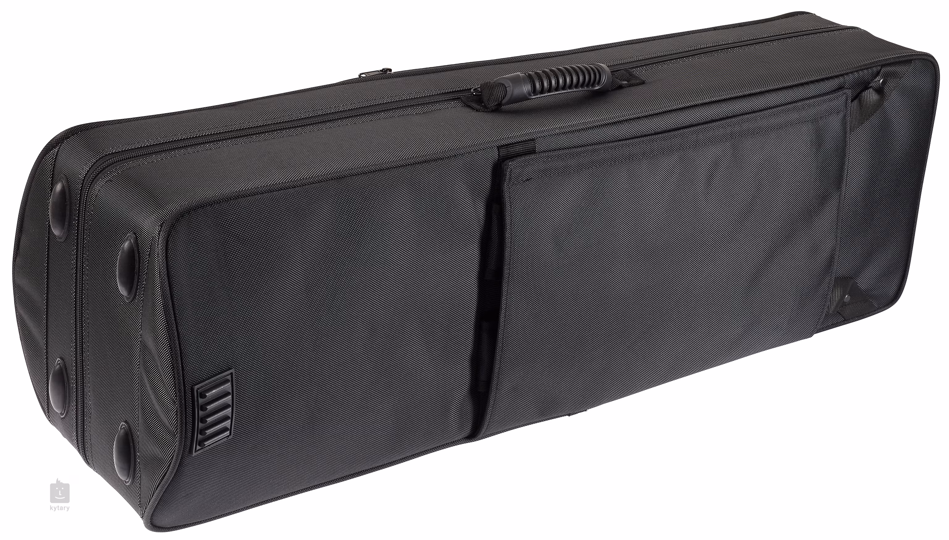 Posaunenkoffer von Bacio Instruments, der Ihr wertvolles Musikinstrument zuverlässig vor äußeren Einflüssen schützt. In der externen Reißverschlusstasche lassen sich Wartungsmaterialien und anderes kleines Zubehör leicht verstauen.