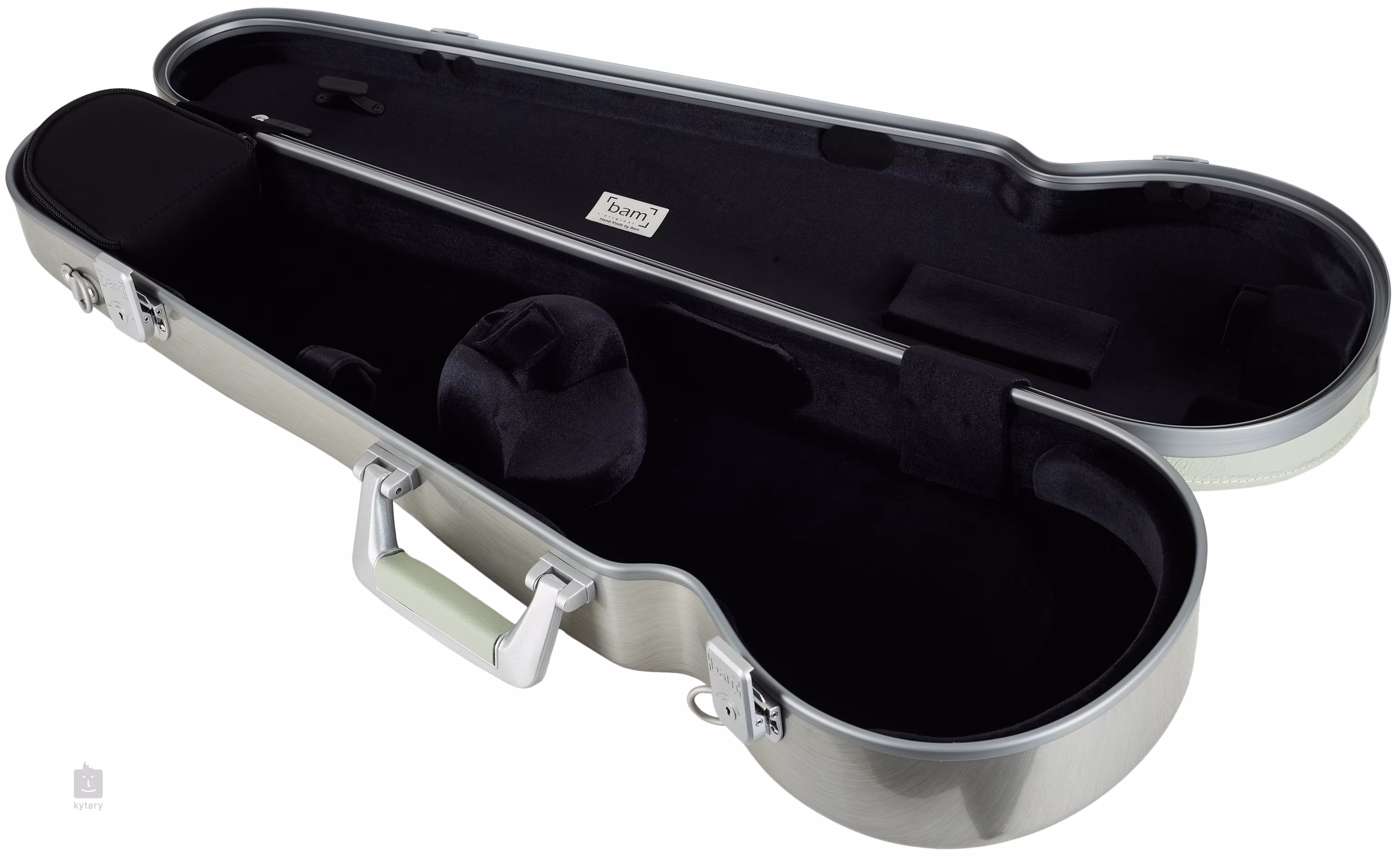 BAM L'ETOILE Hightech Contoured ist ein Schalenetui für Violine, das elegantes Design mit hoher Verarbeitungsqualität verbindet. Die Oberseite des Koffers ist mit handgenähtem Rindsleder überzogen und die Unterseite besteht aus gebürstetem Aluminium, was dem Produkt ein luxuriöses Aussehen verleiht. Der Innenraum ist mit weichem Schaumstoff gepolstert, der dem Instrument maximalen Schutz bietet. Die Außenseite wird durch eine Hülle mit Bam Hightech-Technologie geschützt, die aus drei Schichten widerstandsfähiger Materialien besteht (ABS, Polyurethanschaum und PETG). Im Inneren befinden sich eine abnehmbare Zubehörtasche, zwei Schlaufenhaken und ein Riemen zum Befestigen der Spinne.