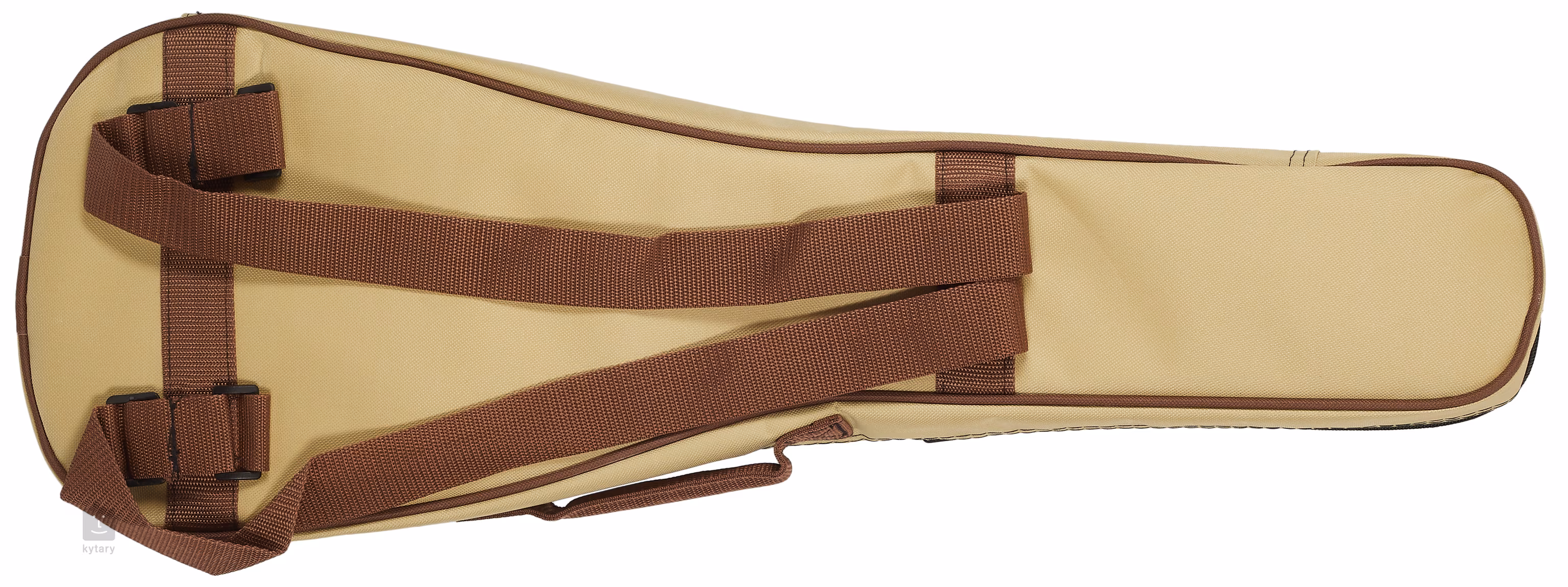 Die Bamboo Guitalele verfügt über einen Korpus aus geschichtetem Mahagoni, ein Griffbrett aus Walnussholz und eine Saitenbefestigung über Null- und Sattelbünde aus Knochen mit gitarrenähnlichen Stimmmechanismen. Das Instrument wird in einem Gigbag geliefert.