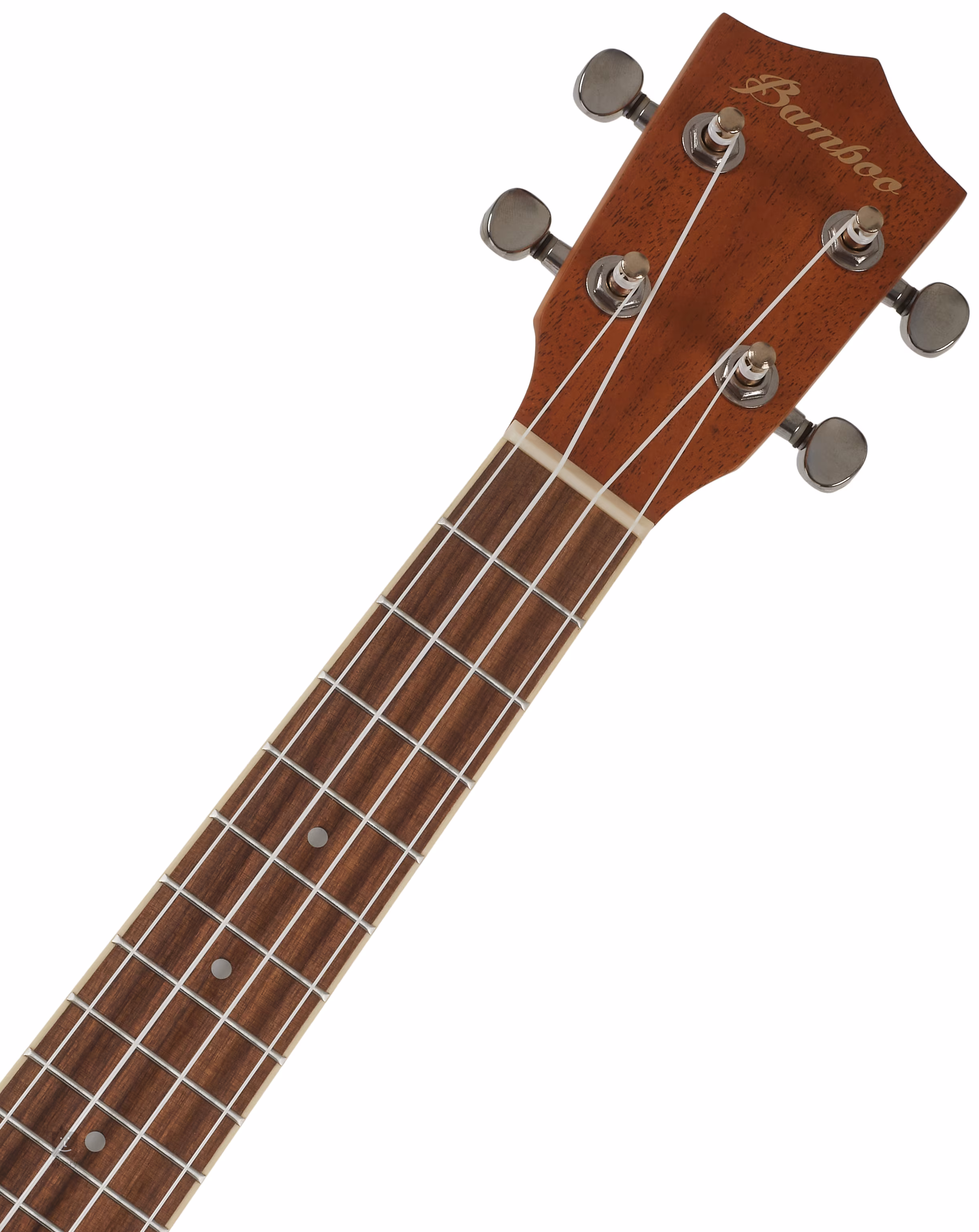 Die New Generation Linie von Bamboo bietet erschwingliche Ukulelen in Konzert- und Soprangrößen, die mit farbenfrohen grafischen Motiven verziert sind. Der Korpus der U-23 TERRA-S Konzert-Ukulele ist aus laminiertem Sapele gefertigt. Auf den Okoumé-Hals ist ein Walnuss-Griffbrett mit achtzehn Bünden geleimt. Die Saiten sind in der firmeneigenen offenen Mechanik und dem Walnuss-Griffbrett über dem Griffbrett und dem Sattel aus Knochen verankert. Das Instrument wird in einem Koffer geliefert.