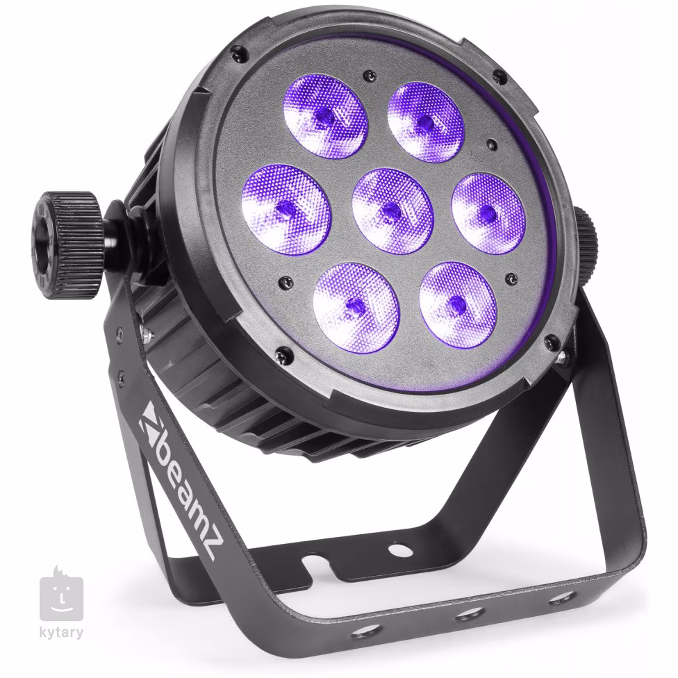 Der BT280 LED Flat Par RGBWA-UV von beamZ ist ein portabler LED PAR-Scheinwerfer, der so kompakt wie möglich konzipiert wurde und somit das ideale Gerät für alle Musiker, DJs und Lichttechniker ist, die viel mit Licht unterwegs sind. Aber auch für Festinstallationen ist er bestens geeignet. Der Reflektor ist mit sieben 10W RGBWA + UV 6in1 LEDs ausgestattet, die nahezu unendliche Möglichkeiten zum Mischen und Erzeugen verschiedener Farbtöne bieten. Ebenfalls enthalten ist ein ultraviolettes Licht für phosphoreszierende Lichtshows. Der Abstrahlwinkel der Leuchte beträgt 26° und erzeugt ein diffuses Wash-Licht, das überall dort nützlich ist, wo die Atmosphäre mit weichem Licht akzentuiert werden soll.