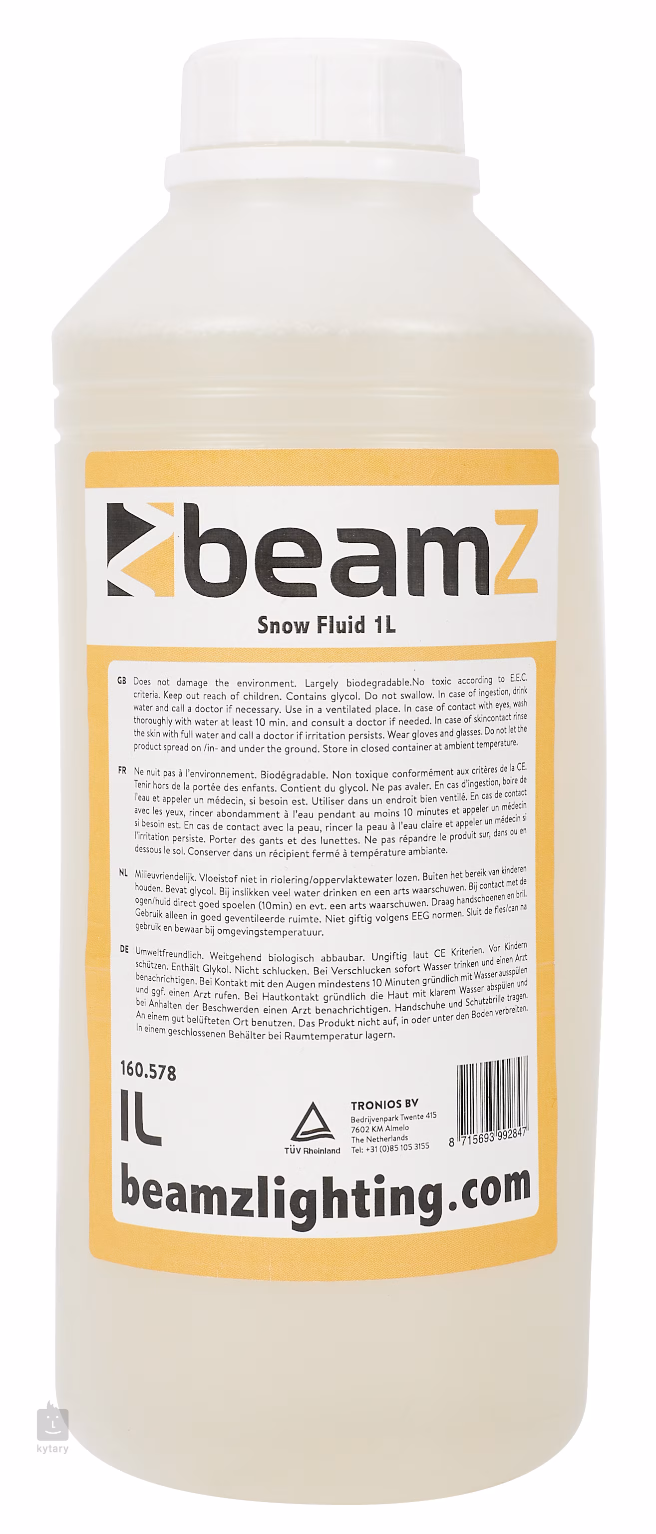 FSNF1 Snow Fluid 1L von BeamZ ist ein professioneller Schneeerzeuger Patrone, die Sie Schnee bei jedem Wetter erstellen können. Die Flüssigkeit hat ein Volumen von 1L, ist ungiftig, ungefährlich, biologisch abbaubar und schadet der Umwelt nicht.