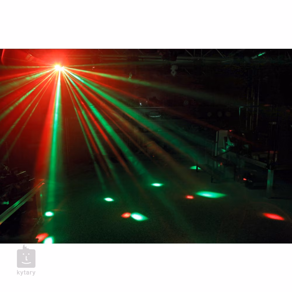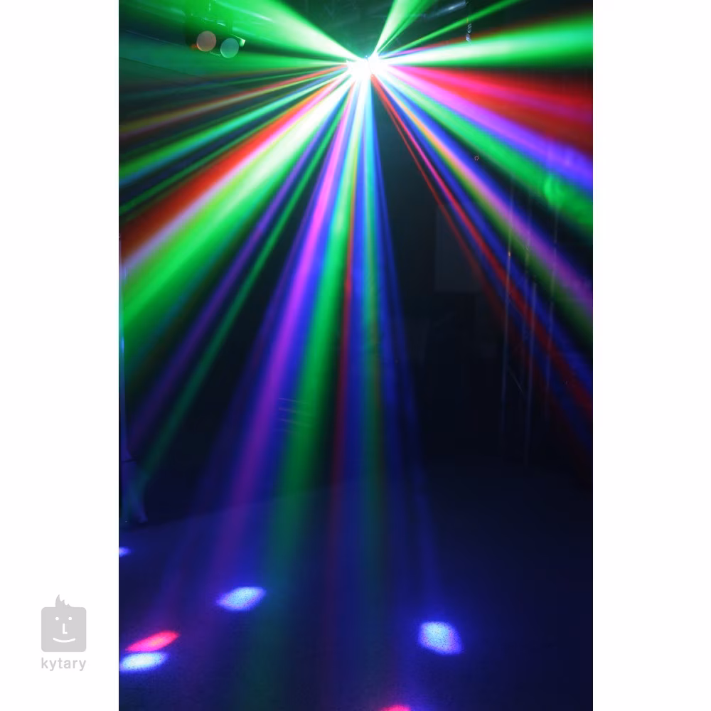Zur Steuerung des Scheinwerfers können Sie manuelle Einstellungen mit vier Tasten, automatische Programme mit einstellbarer Laufgeschwindigkeit oder den Audiokontrollmodus mit wählbarer Mikrofonempfindlichkeit verwenden. Eine Reihe von voreingestellten Lichtshows sind für einen reibungslosen Ablauf ohne komplizierte Einstellungen verfügbar. Eine Metallhalterung für die Befestigung an einer Trägerstruktur ist im Lieferumfang enthalten.