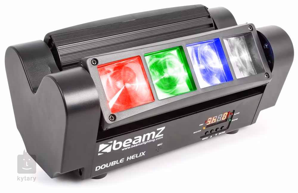 Die MHL820 Double Helix ist ein beliebter LED-Strahleffekt mit zwei rotierenden Lichtbalken. Jeder Balken enthält vier leistungsstarke 3W CREE LEDs in den Farben Rot, Grün, Blau und Weiß. Der Effekt bietet eine individuelle Steuerung der einzelnen Segmente über das DMX-Protokoll, den Automatikmodus mit einstellbarer Laufgeschwindigkeit oder im Audiosteuerungsmodus mit einstellbarer Mikrofonempfindlichkeit. Außerdem gibt es eine Reihe von voreingestellten Lichtshows, einen Strobe-Effekt mit wählbarer Blitzrate und einen linearen Dimmer.