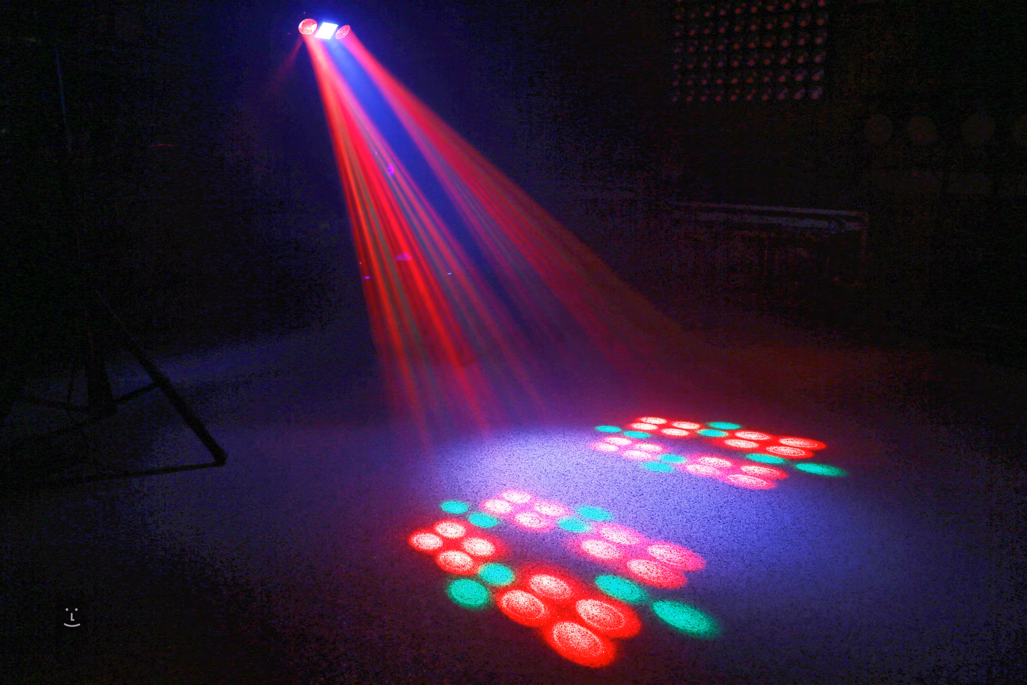 Zur Steuerung des Geräts wird kein externer Controller benötigt - dank der Plug & Play-Funktion wird das Gerät einfach an das Stromnetz angeschlossen und eines der automatischen Programme gestartet. Es gibt eine Reihe von voreingestellten Lichtshows, einen Automatikmodus mit einstellbarer Laufgeschwindigkeit und einen Audiokontrollmodus mit einstellbarer Mikrofonempfindlichkeit. Eine Metallhalterung zur Befestigung an einer Trägerstruktur ist im Lieferumfang enthalten. Das Gesamtgewicht des Geräts beträgt 2,1 kg.