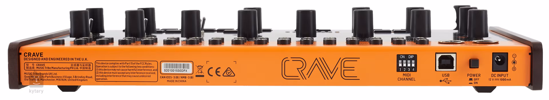 Der zweite Teil von Crave ist ein flexibles Anschlussfeld für unzählige Kombinationsmöglichkeiten und Verdrahtungsvarianten. Alle Anschlüsse sind klar beschrieben und es stehen Ihnen 18 In x 14 Out Anschlüsse zur Verfügung. Auf der Vorderseite finden Sie außerdem MIDI-Anschlüsse und einen Kopfhörerausgang für detailliertes Monitoring. Auf der Rückseite befindet sich ein USB-Anschluss für die Verbindung mit einem PC. Ein Netzadapter und 6 Patchkabel sind im Lieferumfang enthalten.