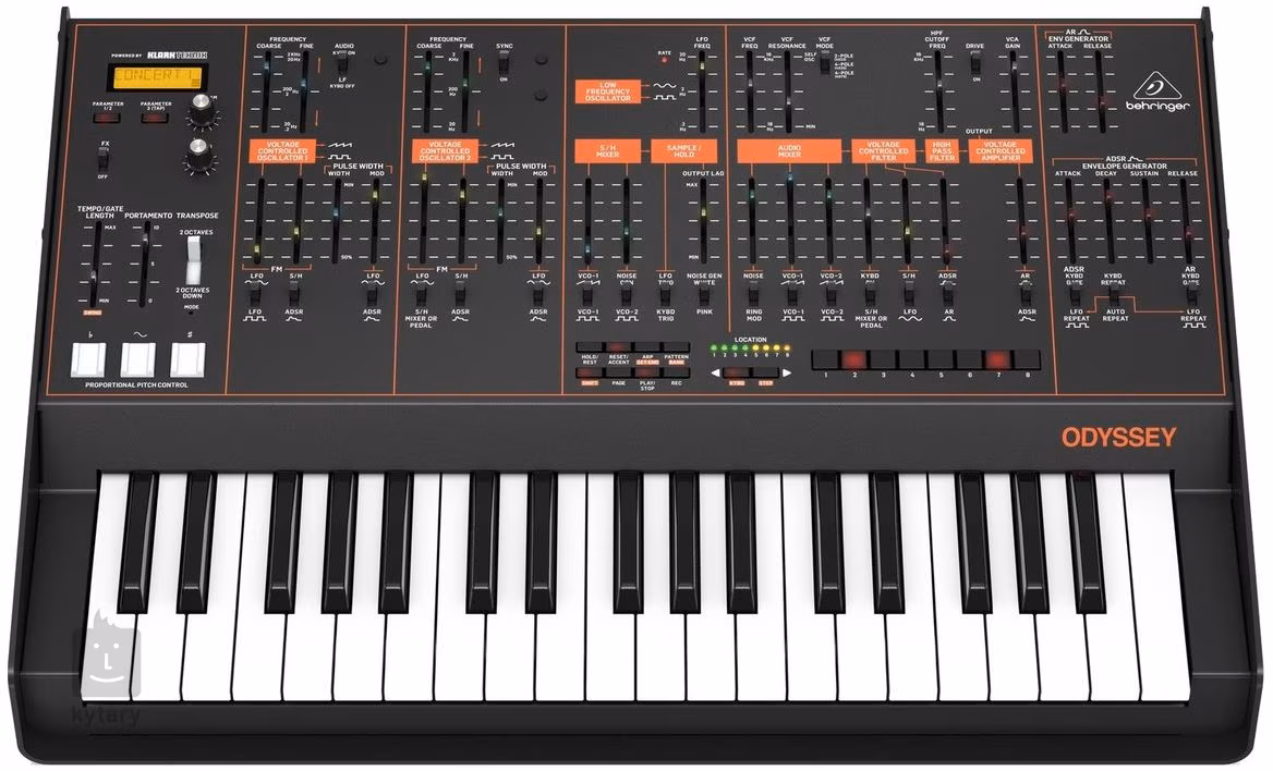 ODYSSEY’s sequencer allows you to program up to 32 steps of notes and rests and save them as a pattern. You can record, save and recall up to 64 patterns, all of which can be stored in the 8 banks, each holding up to 8 patterns. Your sequences can be played either in Keyboard mode, where you create and store the pattern, or in Step mode, which allows you to interact while composing the pattern. The onboard Arpeggiator features 8 patterns (you can use just by playing a chord, which the arpeggiator then sequences through your selected pattern. Both the sequencer and arpeggiator in the ODYSSEY are fun, mesmerizing and totally addictive...