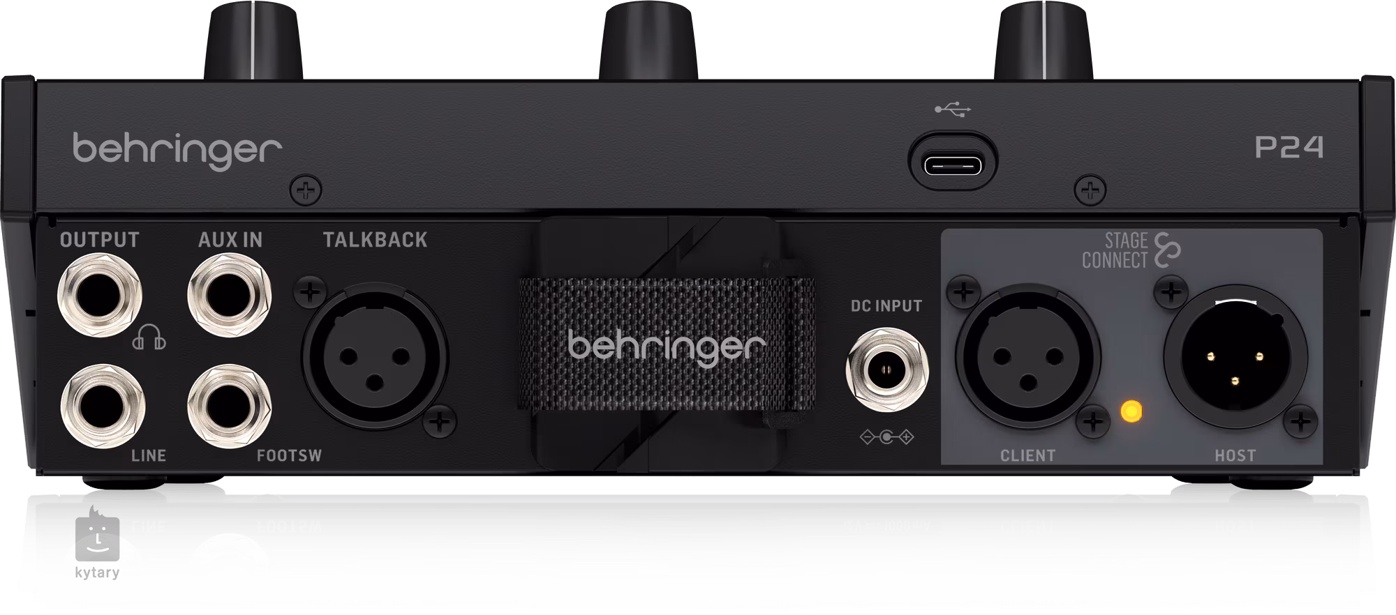 Merkmale > Super intuitive Monitor-Misch- und Talkback-Lösung, kompatibel mit StageConnect-Geräten wie dem Behringer P24HUB oder WING > 12 Stereogruppen und 1 lokaler Aux-Eingang ermöglichen das schnelle Einrichten von persönlichen Mischungen aus Stereokanälen > 60-mm-Fader bieten schnellen Zugriff und klare Sicht auf die Einstellungen > WING Reverb-Effekt, um trockenen Eingangssignalen Raum zu geben > Eingebaute Stereomikrofone, um das Gefühl der akustischen Isolation bei In-Ear-Monitoren zu beseitigen > Tilt-EQ in allen Kanälen zur einfachen Einstellung des Klangcharakters mit 1 Potentiometer > einstellbarer Limiter ermöglicht sichere Abhörpegel > StageConnect 26 x 6-Kanal-Audioübertragung mit praktisch keiner Latenz > Unkomprimiertes PCM-Audio mit 24 Bit und 44,1/48 kHz Auflösung über ein Standard-XLR-Kabel (DMX-Kabel empfohlen) > StageTalk Intercom-System für die Kommunikation zwischen FOH, Bühnentechniker und Musikern > Stabile Reichweite bis zu 40 m mit einem XLR-DMX-Kabel (für kurze Verbindungen kann ein Standard-Mikrofonkabel verwendet werden) > Return-Kanäle ermöglichen das Zurücksenden von persönlichen Mischungen an den P24HUB zum Anschluss an drahtlose IEM-Sender > Analoger Stereo-Aux-Eingang für lokale Quellen wie Click-Track > Externer dynamischer Mikrofoneingang auf 1/4" TRS, um Anweisungen an Teamkollegen zu geben oder mit einem Mischtechniker zu sprechen > Fußschaltereingang auf 1/4" TS zur Steuerung des Talkback-Kanals > Hervorragende Ausgangsleistung für den Einsatz mit niederohmigen Kopfhörern und In-Ears auch in lauten Umgebungen > Gleichstromversorgung ermöglicht die Verkettung von mehr als zwei P24-Personalmischpulten > Integrierte Mikrofonständerklemme zur sicheren Befestigung an Standard 5/8" Mikrofonständern > Kompatibel mit Behringer P16-MB und Midas DP48-MB Mikrofonständeradapter (optional erhältlich)
