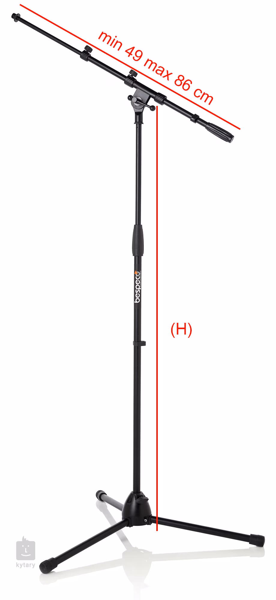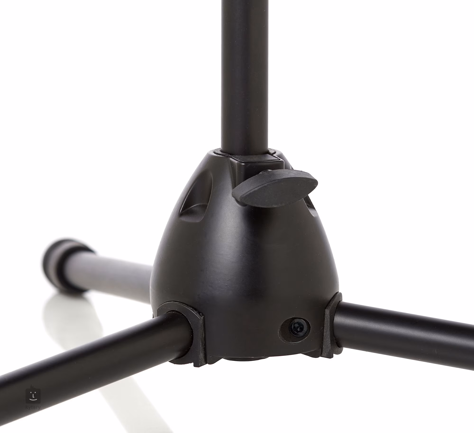 Professionelles Mikrofonstativ mit Teleskoparm (Bereich 49 - 86 cm), Mittelgelenk, Metallsockel, ergonomischem Griff und Gegengewicht aus beschwertem Nylon. Die Beine sind mit vibrationsdämpfenden Gummipuffern ausgestattet. Dank seiner Stabilität ist das Stativ für jede Situation bestens geeignet.