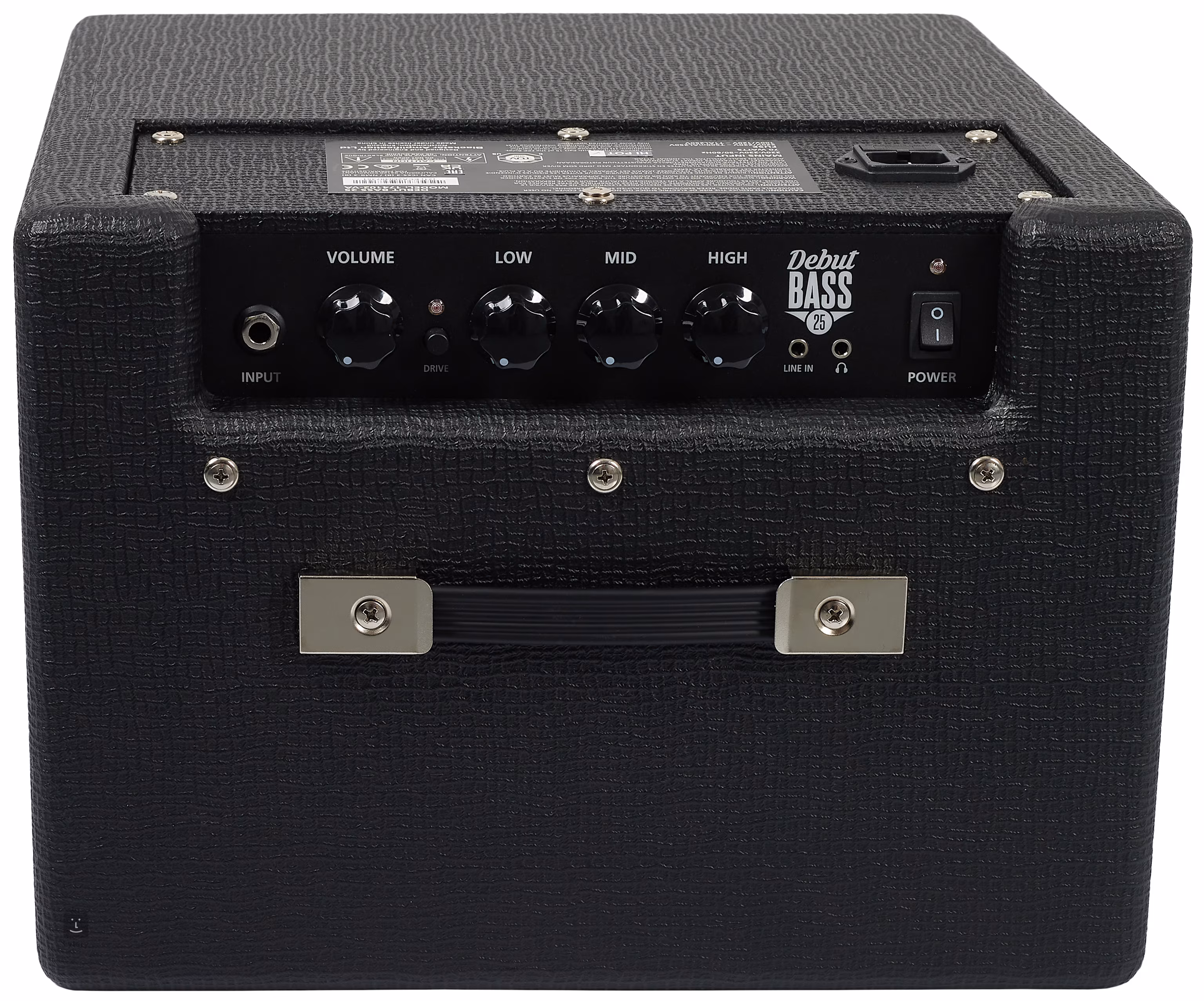 Der Debut Bass 25 liefert 25 Watt Leistung und ist mit einem 8"-Lautsprecher ausgestattet. Während der Clean-Kanal einen sauberen Sound für melodisches Spiel und Blues-Lines liefert, aktiviert der Drive-Knopf den Distort-Kanal, perfekt für leidenschaftliche Rocker und Metalheads. Mit den drei Standard-Potentiometern des Dreiband-EQs Low, Mid und High lässt sich der Frequenzbereich des Geräts dann genau auf die eigenen Bedürfnisse abstimmen. Der Combo bietet einen Kopfhörerausgang, den du auch direkt an deine DAW oder dein Mischpult anschließen kannst. Außerdem gibt es einen Line-Eingang für die Wiedergabe externer Audioquellen.