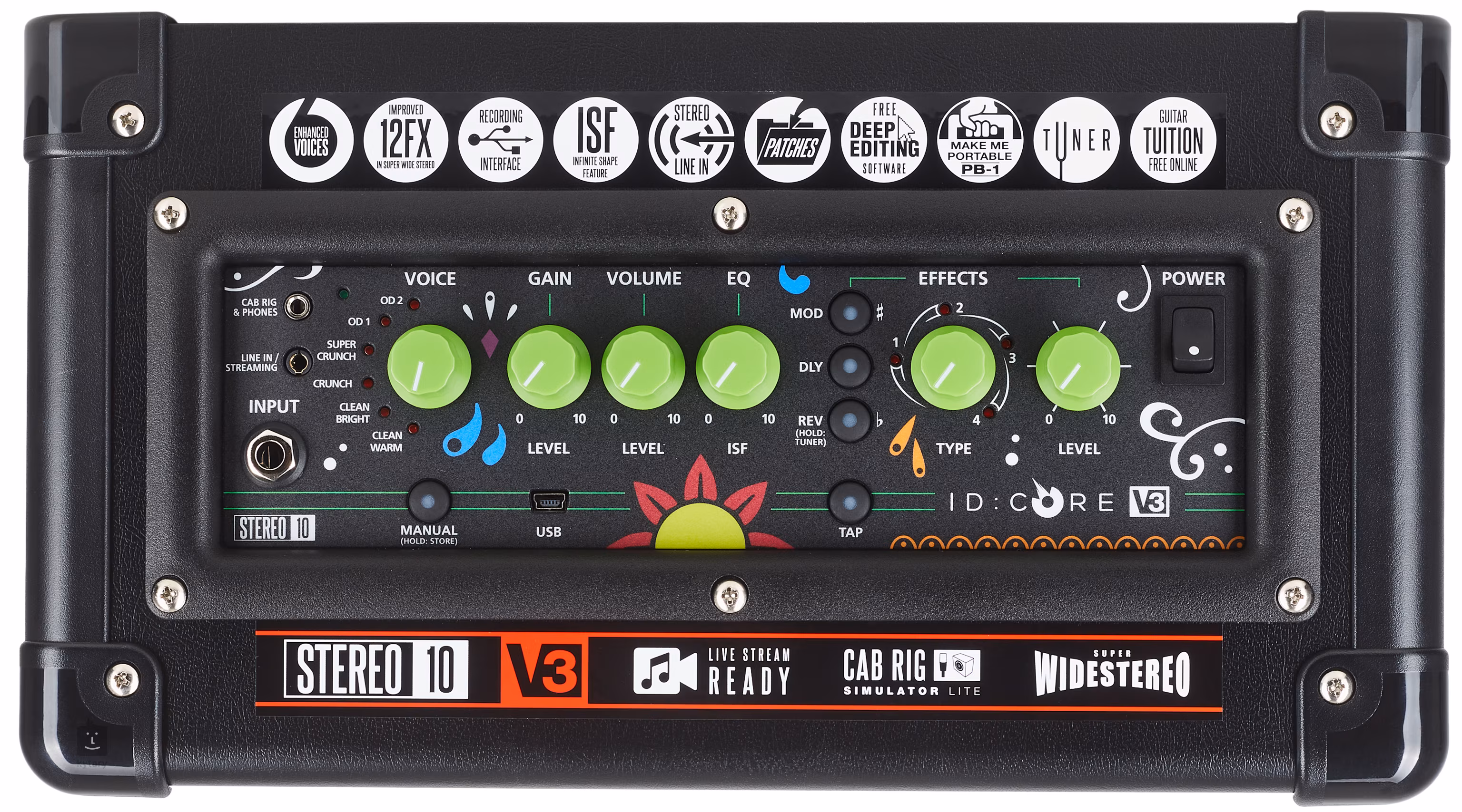 Der Combo bietet eine Leistung von 10 Watt. Zu den neuen Funktionen gehören die Möglichkeit, über ein 3,5-mm-TRRS-Kabel an ein kompatibles Gerät (iPhone, Android) zu streamen, und die Architect-Bearbeitungssoftware (als PC- und Mac-Version herunterladbar), die erweiterte Bearbeitungsoptionen einschließlich Backup und Patch-Sharing bietet (der Combo bietet Speicherplatz für 6 Benutzer-Patches). Die Software umfasst Cab Rig Lite, einen Boxensimulator, in dem Sie eine virtuelle Box, ein Mikrofon und die Raumakustik auswählen können.