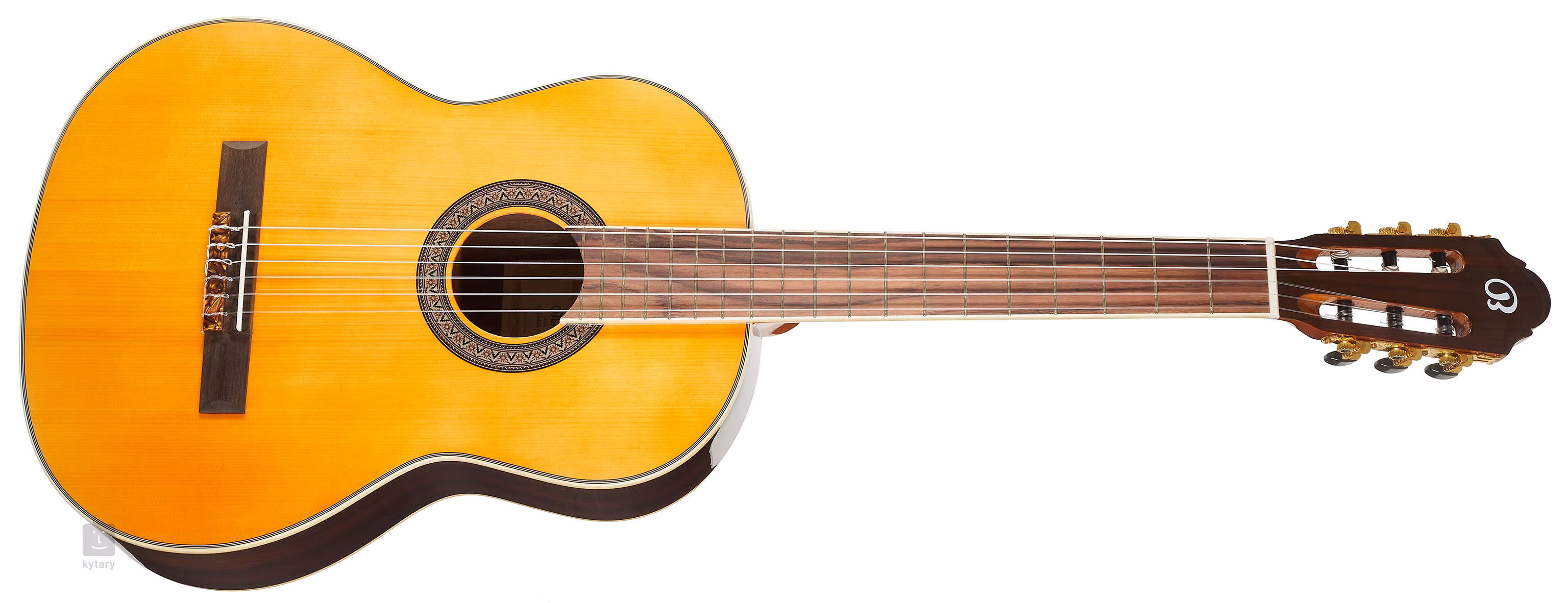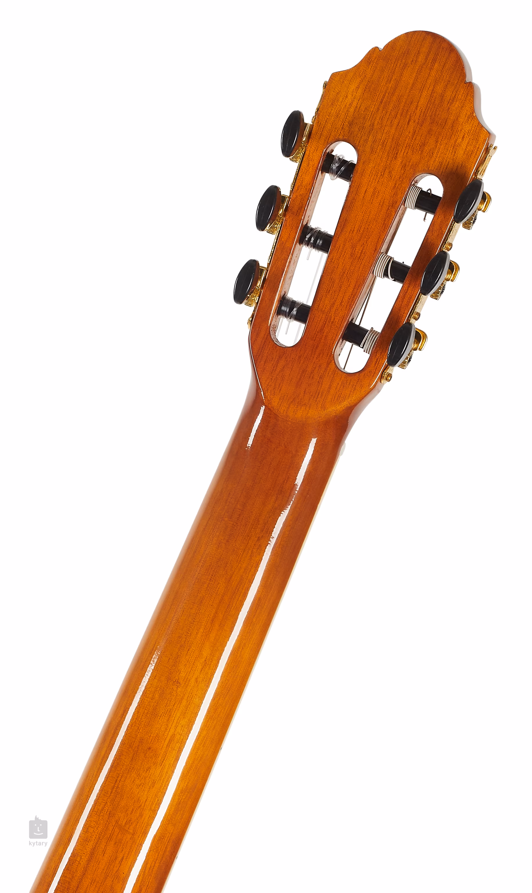 Die Vorderseite der Gitarre ist aus laminierter Fichte gefertigt, während Boden und Zargen aus laminiertem Palisanderholz bestehen. Ein Hals aus Nato-Holz, das wegen der optischen Ähnlichkeit auch als östliches Mahagoni" bezeichnet wird, ist mit einem Griffbrett aus einem modernen Verbundwerkstoff verleimt. Der traditionelle Look wird durch eine Kopfplatte mit klassischer offener Mechanik und dekorativen Elementen in Form von Kunststoffzierleisten (ABS) und Rosetten unterstrichen.