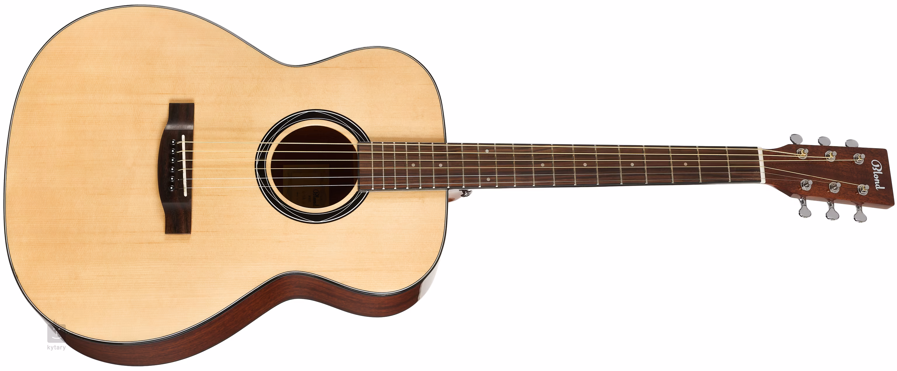 Die Blond G-SA S NAT ist eine Akustikgitarre mit einem Grand-Auditorium-Korpus, der sich sowohl für das Fingerstyle- als auch für das Picking-Spiel eignet. Die Vorderseite der Gitarre ist aus massiver Fichte gefertigt, während Boden und Zargen aus laminiertem Mahagoni bestehen. Auf den Okoumé-Hals ist ein Palisander-Griffbrett mit 20 Bünden geleimt. Die Saiten sind in verchromten Druckgussmechaniken über dem Griffbrett aus Knochen gelagert. Die stilvolle Verarbeitung wird durch die aufgetragene Hochglanzlackierung und traditionelle Elemente in Form einer schwarzen, umlaufenden Deckenverkleidung (ABS) und Rosette akzentuiert.