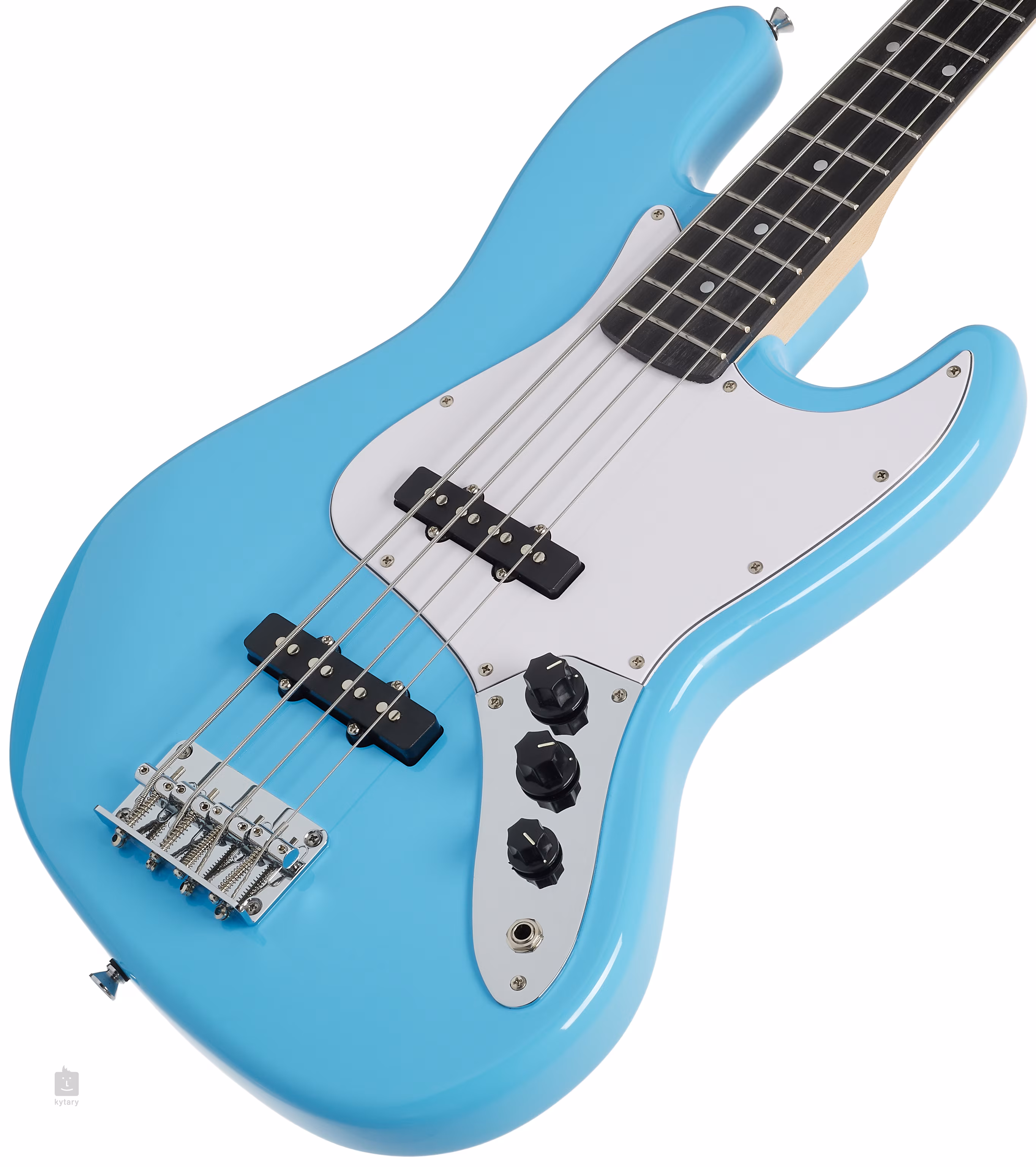 Der aufgesetzte Ahornhals ist mit einem Palisandergriffbrett mit 20 Bünden ausgestattet, das eine schnelle Ansprache und ein ausgewogenes Sustain gewährleistet. Die beiden JB-Style-Tonabnehmer arbeiten mit einem passiven elektronischen System (Lautstärke/Lautstärke/Tonblende), mit dem Sie Ihren Ton an nahezu jedes Genre und jeden Geschmack anpassen können.