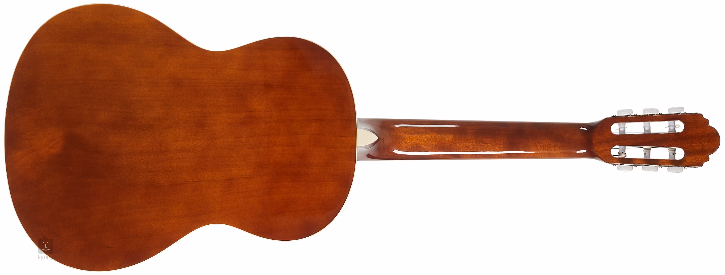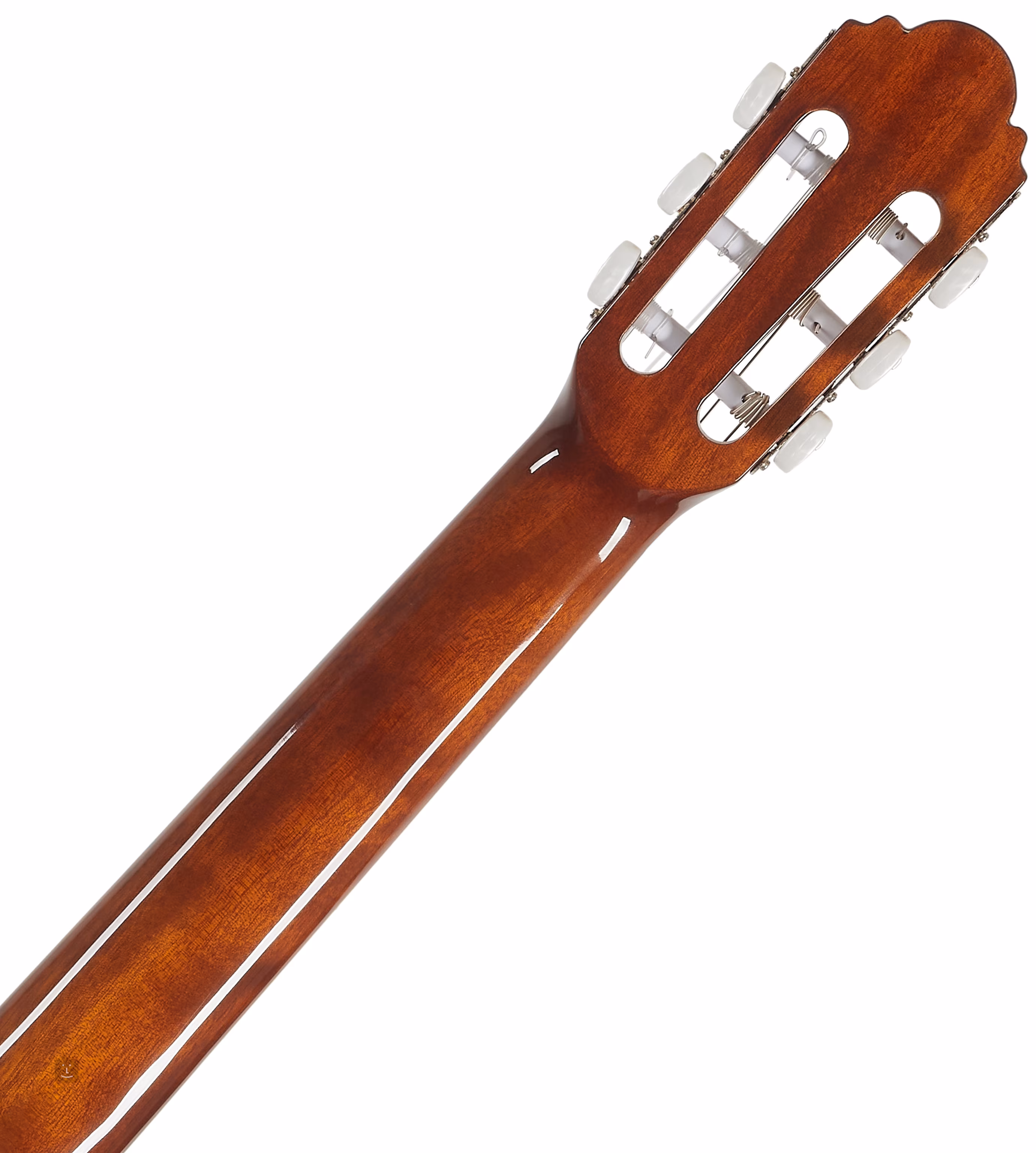 Die Blond OC-44 NAT Konzertgitarre in 4/4 Größe bietet einen Korpus aus laminierter Fichte und Linde, einen Hals aus Okoumé-Holz sowie ein Griffbrett und eine Kopfplatte aus modernem Verbundmaterial. Die Saiten sind in klassischen verchromten Mechaniken mit weißen Wirbeln über einem Kunststoff-Nullbund aufgezogen. Das stilvolle Finish wird durch den aufgetragenen Glanzlack und traditionelle Elemente in Form von Zierrosetten und Kunststoffzierleisten (ABS) akzentuiert.