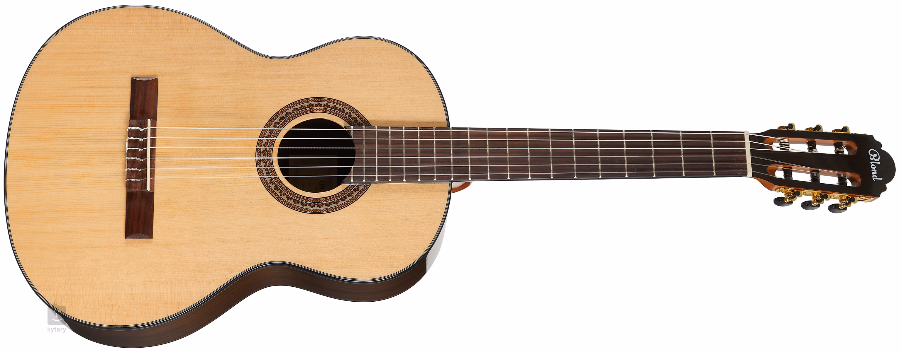 Die Blond SC-44S R NAT Konzertgitarre in 4/4 Größe bietet eine halbmassive Konstruktion mit einer massiven Fichtendecke und Boden und Zargen aus laminiertem Palisander, einem Mahagoni-Hals und einem Palisander-Griffbrett und -Griffbrett. Die Saiten sind in klassischen verchromten Mechaniken über einem Kunststoff-Stahl-Griffbrett aus gehärtetem Verbundmaterial mit Metallpartikeln montiert. Das stilvolle Finish wird durch den aufgetragenen Glanzlack und traditionelle Elemente in Form von Zierrosetten und Kunststoffleisten (ABS) akzentuiert. Die Gitarre ist mit Savarez-Saiten bespannt.