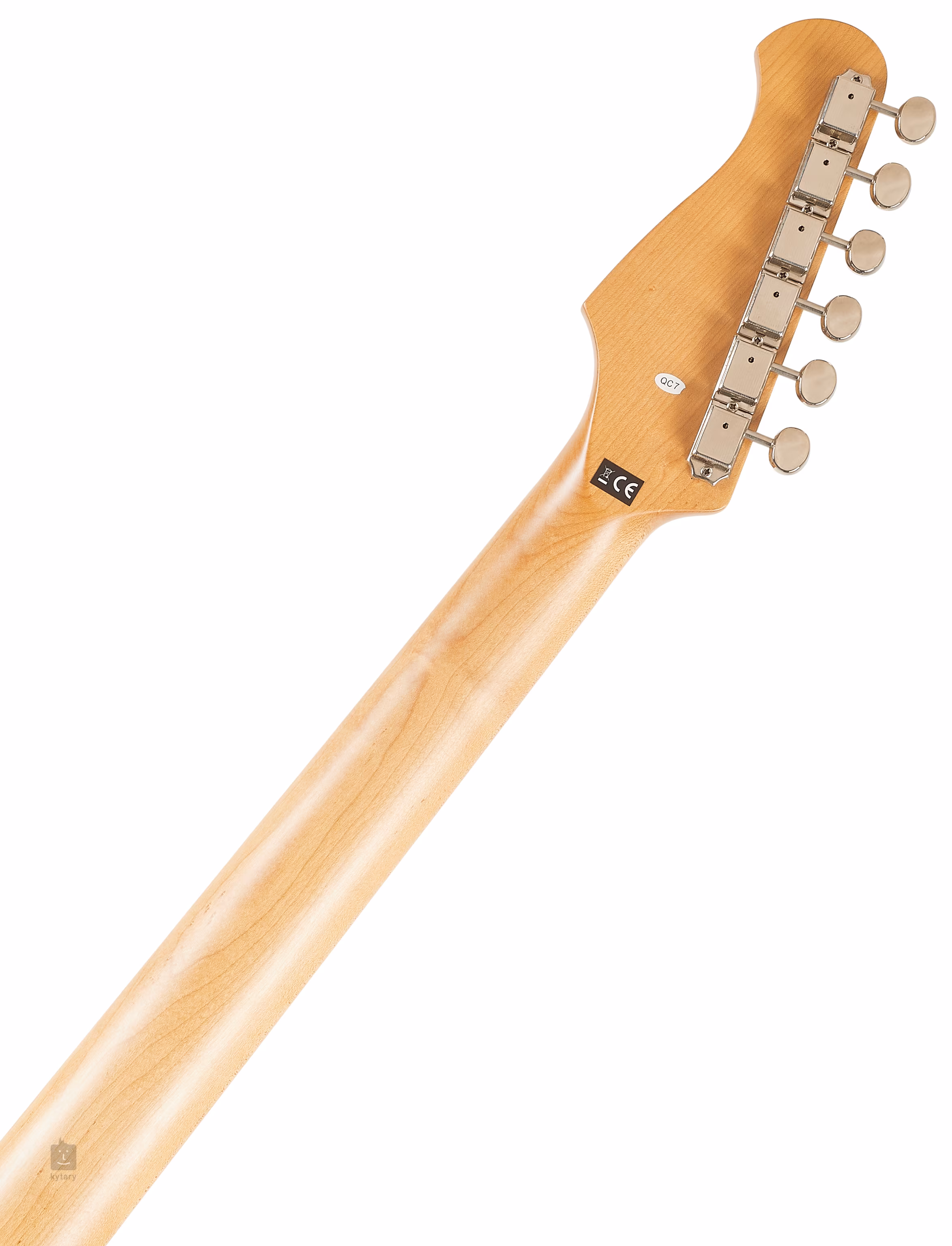 Der Korpus der Gitarre ist aus Linde gefertigt. Auf den Ahornhals ist ein Ahorngriffbrett mit zweiundzwanzig Bünden geleimt. Dank der Wärmebehandlung des Halses (karamellisierter Ahorn) ist das Holz stabiler und erhält gleichzeitig die angenehme goldene Farbe von jahrelang gespielten Instrumenten.