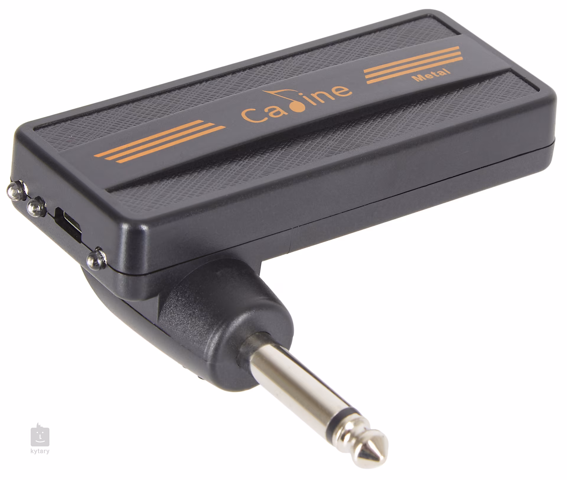 Caline Gitarren-Kopfhörerverstärker mit eingebautem Distortion-Effekt, Drehreglern für Lautstärke, EQ und Distortion, Aux-In-Eingang für externe Audiosignale, Kopfhörereingang und wiederaufladbarem Akku mit bis zu acht Stunden Betriebsdauer (aufladbar über das mitgelieferte USB-Kabel).