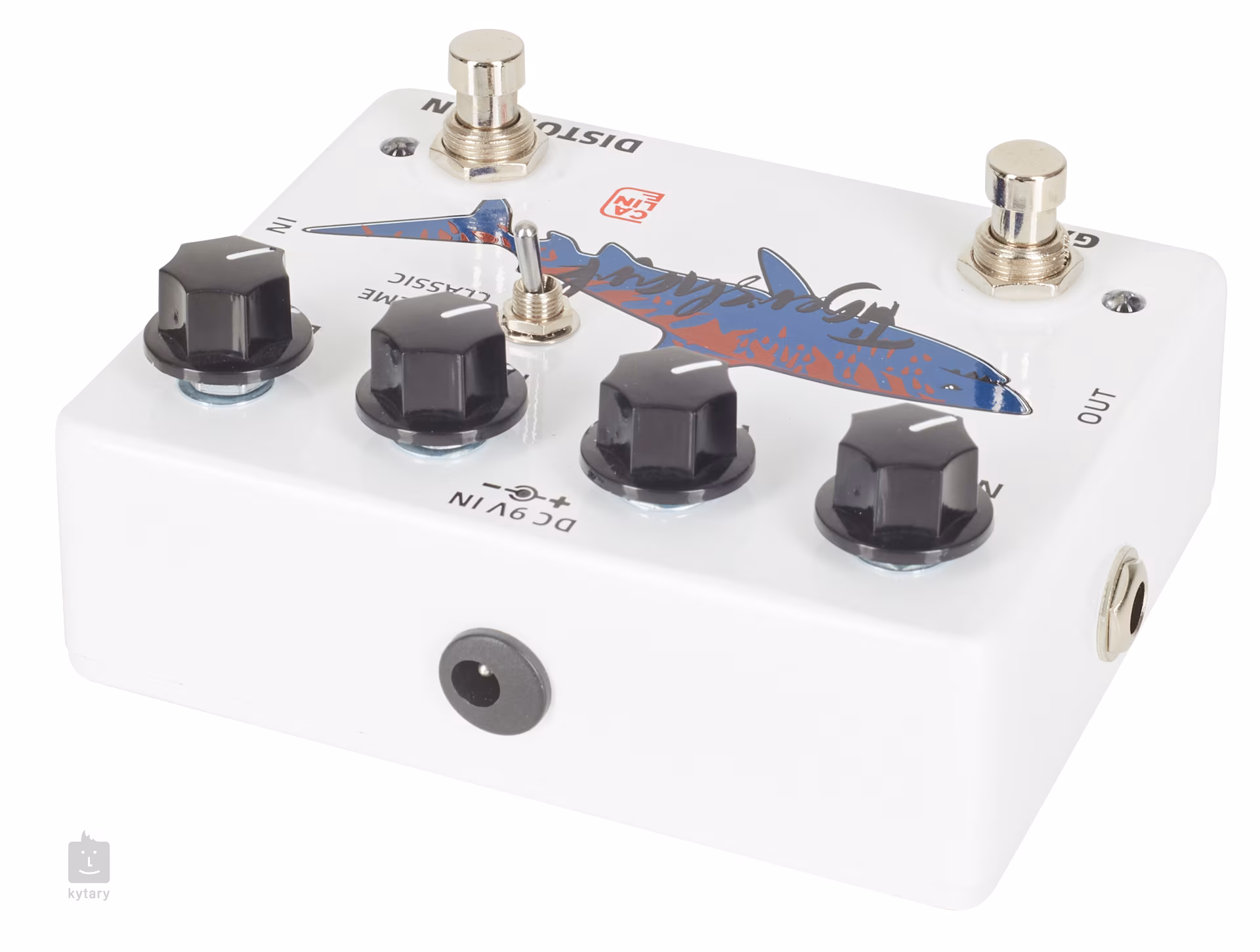 Das Caline Tigershark Pedal Effect kombiniert zwei Caline-Pedal-Designs in einem Gehäuse - den CP-77 Heavy Metal Hi-Gain Distortion-Effektschaltkreis und das CP-39 The Noise, ein praktisches, einfaches Noise Gate, das einfach das Rauschen herausfiltert, das mit Distortion-Pedalen und höherer Verzerrung verbunden ist.