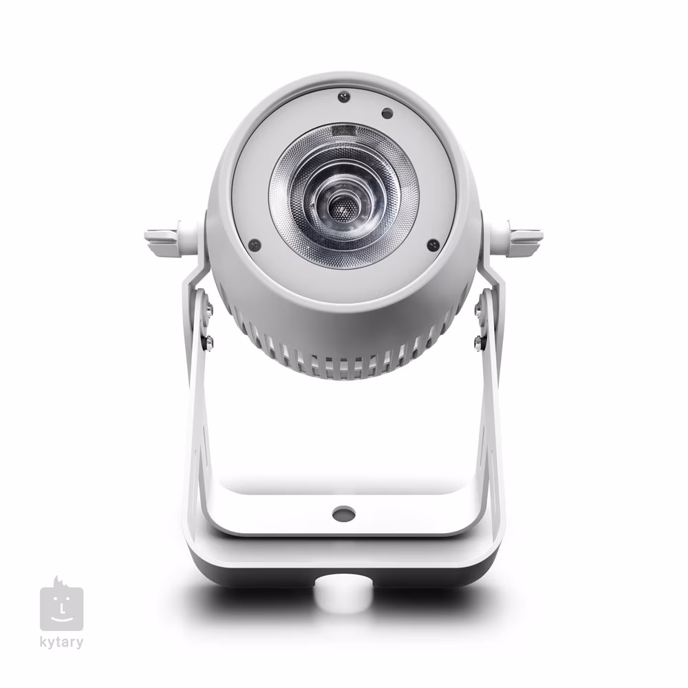 Der Scheinwerfer Q-SPOT 40 RGBW WH von CAMEO ist ein sehr kompakter Scheinwerfer mit einer einzigen 40W Osram-LED, der eine vielfältige RGBW-Farbpalette bietet, die Ihnen eine Fülle von Mischmöglichkeiten eröffnet. Gleichzeitig nutzt er alle Vorteile der LED-Technologie wie Energieeinsparung, geringe Wärmeentwicklung und lange Lebensdauer - seine Diode hält bis zu 50.000 h. Der Strahler selbst hat einen Abstrahlwinkel von 4,5° für ein scharfes, fokussiertes Licht, aber ein Paar Ersatzlinsen mit Abstrahlwinkeln von 10° und 25° für einen diffuseren Lichtkegel sind ebenfalls enthalten.