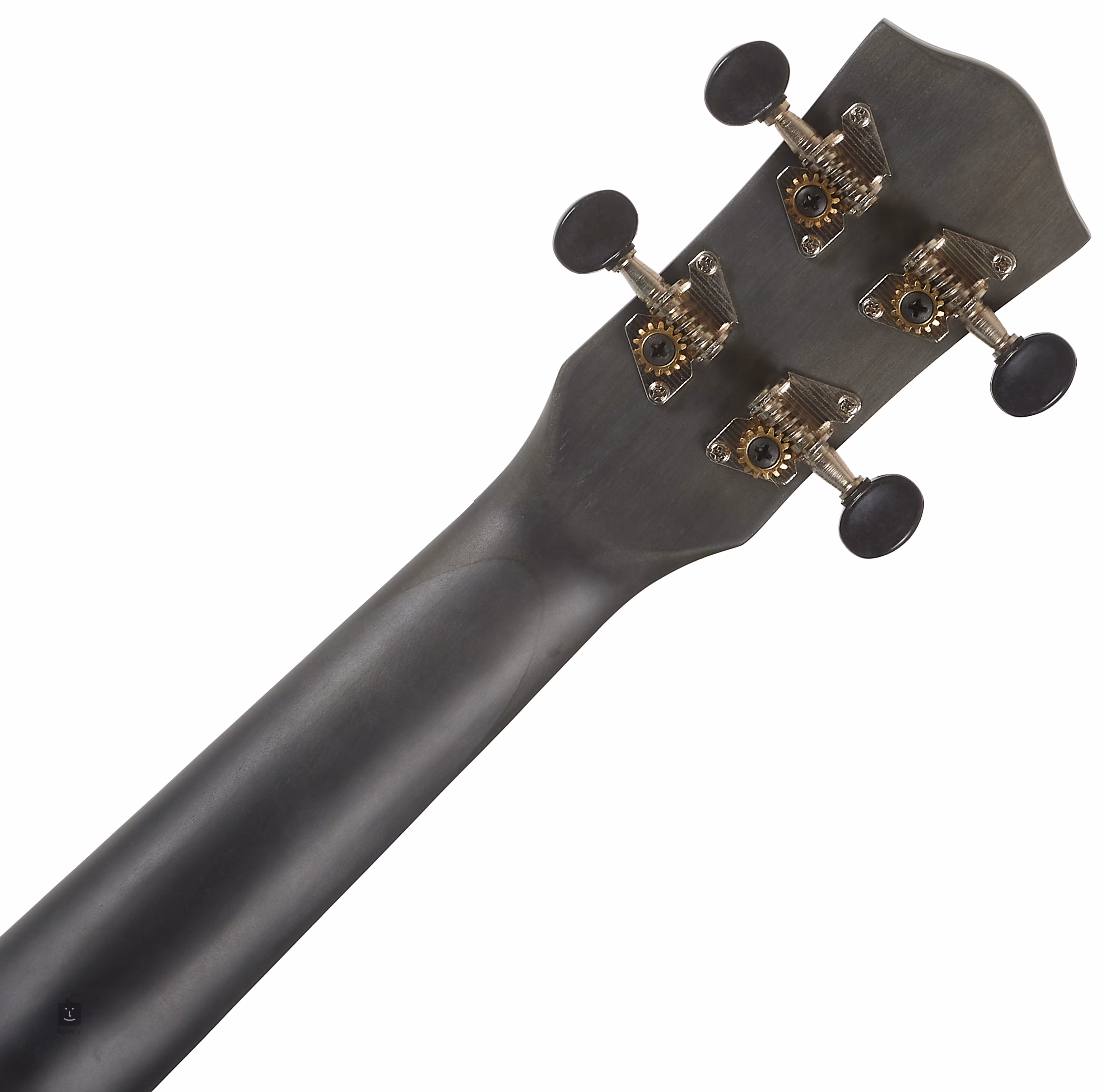 Der Korpus und der Hals der Ukulele sind aus Lindenholz gefertigt. Das Griffbrett aus WPC-Verbundwerkstoff ist durch zwölf Bünde unterteilt (dasselbe Material wird für die Kopfplatte verwendet). Die Saiten werden in offenen Stimmmechanismen vom Typ Gitarre gehalten. Das schlichte Design der Gitarre wird durch eine dekorative Rosette mit Fischgrätenmuster aufgewertet.
