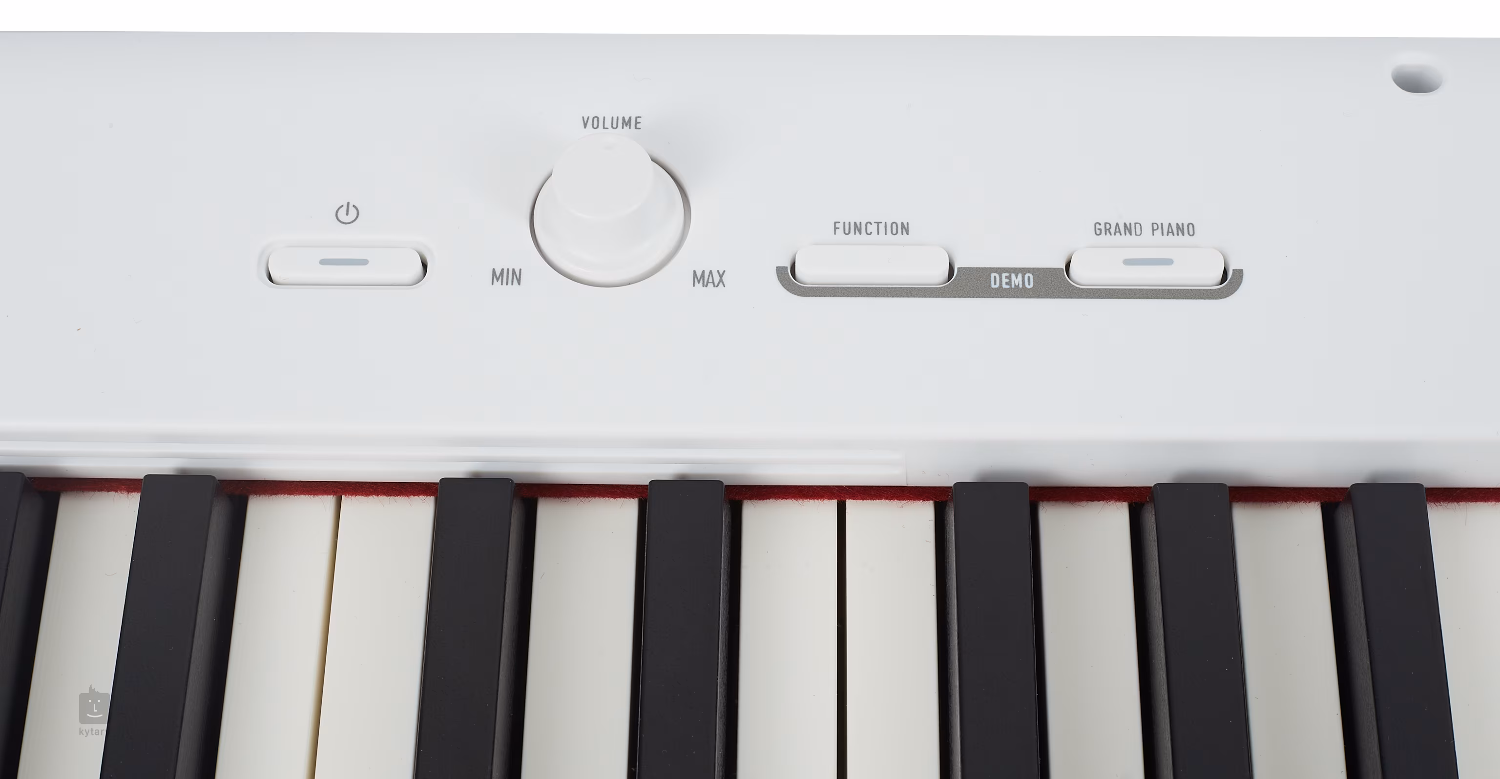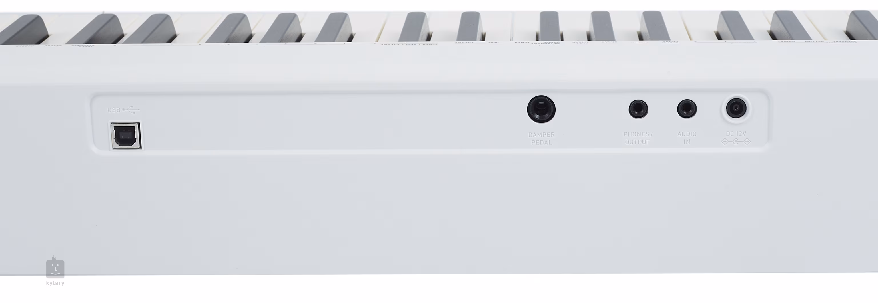 Das eingebaute Soundsystem hat eine Leistung von bis zu 16 Watt, und dank des AUX-Eingangs können Sie es auch zum Spielen von externen Quellen verwenden. Das Piano wird entweder mit dem Adapter AD-A12150 (im Lieferumfang enthalten) oder mit sechs AA-Batterien betrieben.