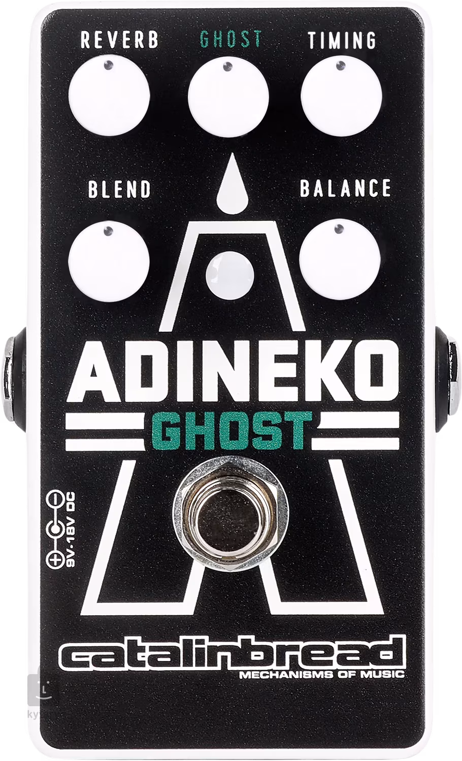 Der Effekt wird mit insgesamt fünf Potentiometern gesteuert. Mit dem Reverb-Regler können Sie die ideale Stärke der Rückkopplung einstellen und sich entlang eines Spektrums von Nullrückkopplung bis hin zu unkontrollierten Schwingungen bewegen. Der Ghost-Regler dient zur Steuerung des Flaggschiff-Oktav-Effekts, der das Herzstück der Box ist. Mit dem Timing-Regler lässt sich die Länge des Delay-Effekts einstellen, von schnellen Echos bis hin zu ausgedehnten Delays, während das Blend-Potentiometer das Verhältnis von Wet- zu Dry-Signal regelt. Zu guter Letzt gibt es noch den Balance-Regler, der wie eine Mischung aus zwei parallelen Delay-Linien wirkt, von denen eine leicht gegenüber der anderen verzögert ist - wenn er in der Mitte steht, hören Sie beide Linien in gleicher Lautstärke, wenn er nach links gedreht wird, ist nur die schnellere zu hören, und wenn er nach rechts gedreht wird, hören Sie nur die langsamere. Die Einstellung ist sehr flexibel und ermöglicht es Ihnen, eine Vielzahl unterschiedlicher Sounds zu erzeugen, die Ihren Gitarrenton zweifellos bereichern und Ihren Zuhörern gefallen werden.