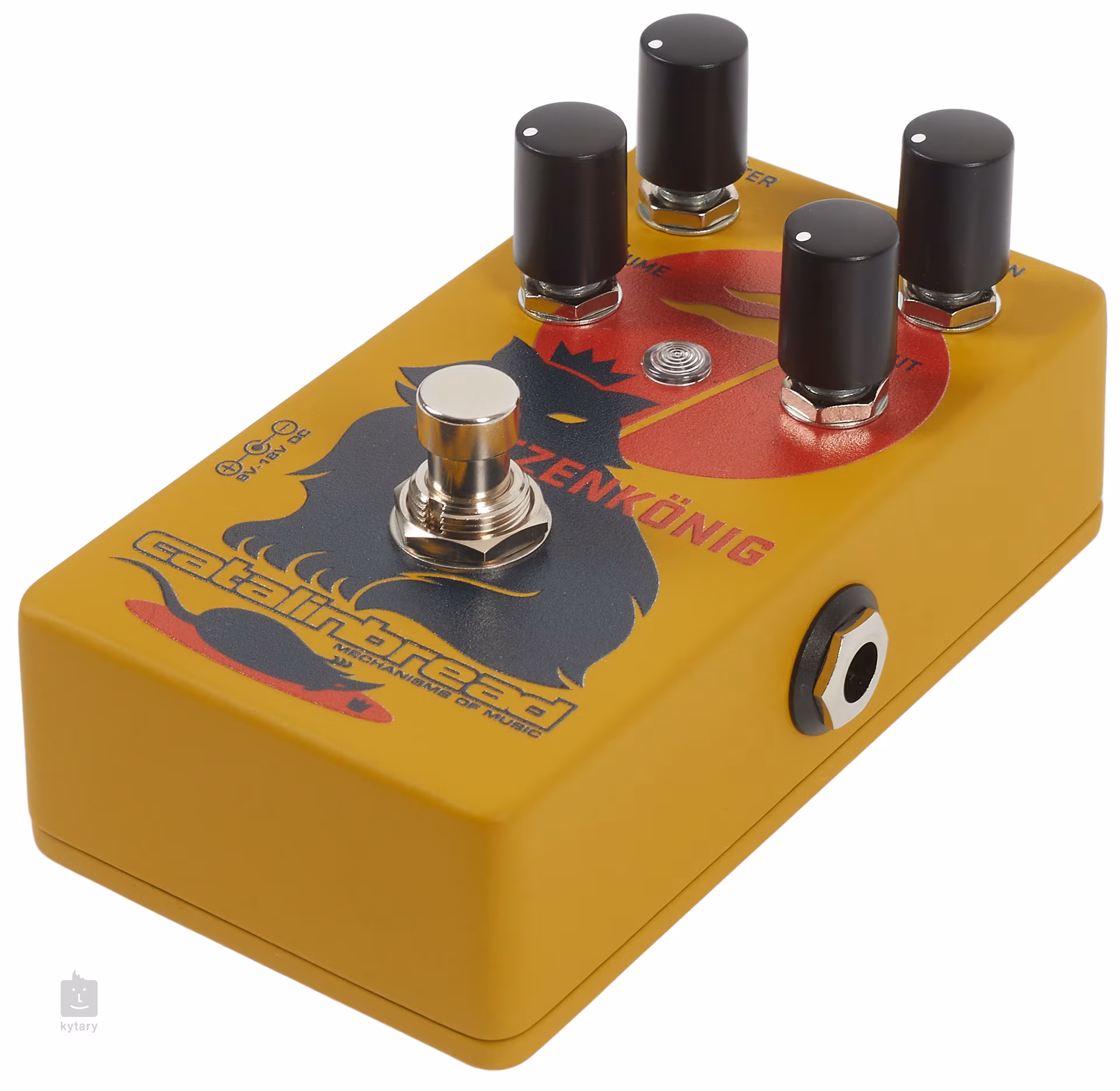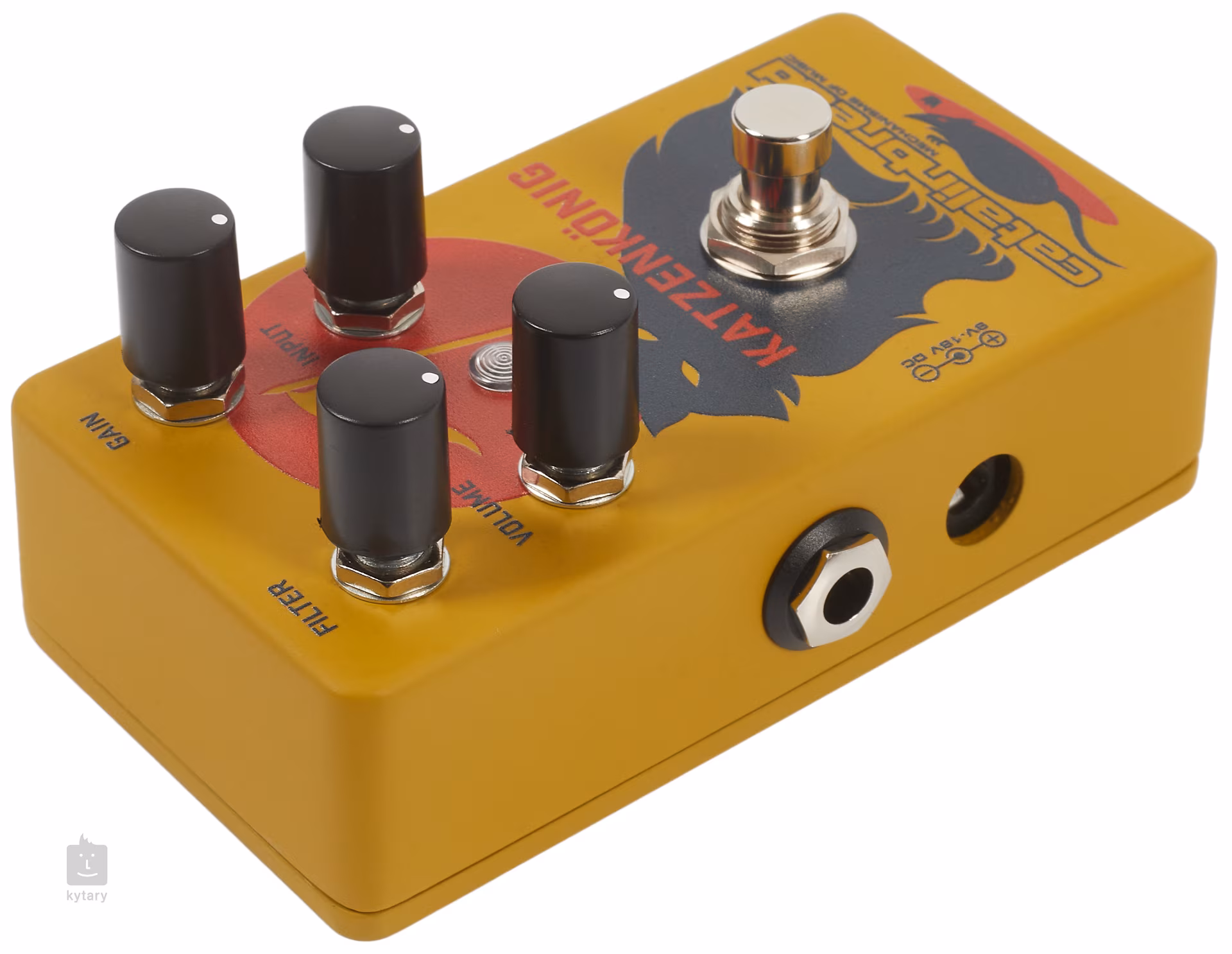 Der KATZENKÖNIG Pedal-Effekt hat den singenden Sound einer Fuzz-Box, aber mit dem fest eingespannten Kern eines Distortion-Pedals. Er bietet eine breite Palette an Verzerrungen von schönen singenden Tönen über rockigen Crunch bis hin zu verdünnter Fuzz-Wildheit. Es verträgt sich sowohl mit Humbuckern und Singlecoils als auch mit fuzzed out oder super cleanen Gitarren.