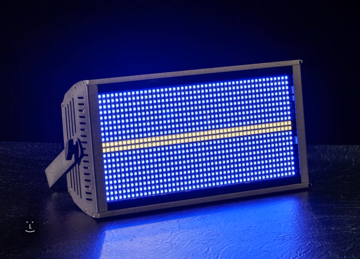 Der Lightblaster L960 von CentoLight ist ein einzigartiger LED-Scheinwerfer, der in erster Linie für Wash-Lighting und Strobe-Effekte entwickelt wurde. Er ist mit 960 LEDs - 96 weißen und 864 farbigen RGB-LEDs - ausgestattet und in 8 + 8 unabhängige Zonen unterteilt, die der Benutzer je nach Bedarf einrichten kann, wobei jede Zone einzeln oder über voreingestellte Programme gesteuert werden kann.