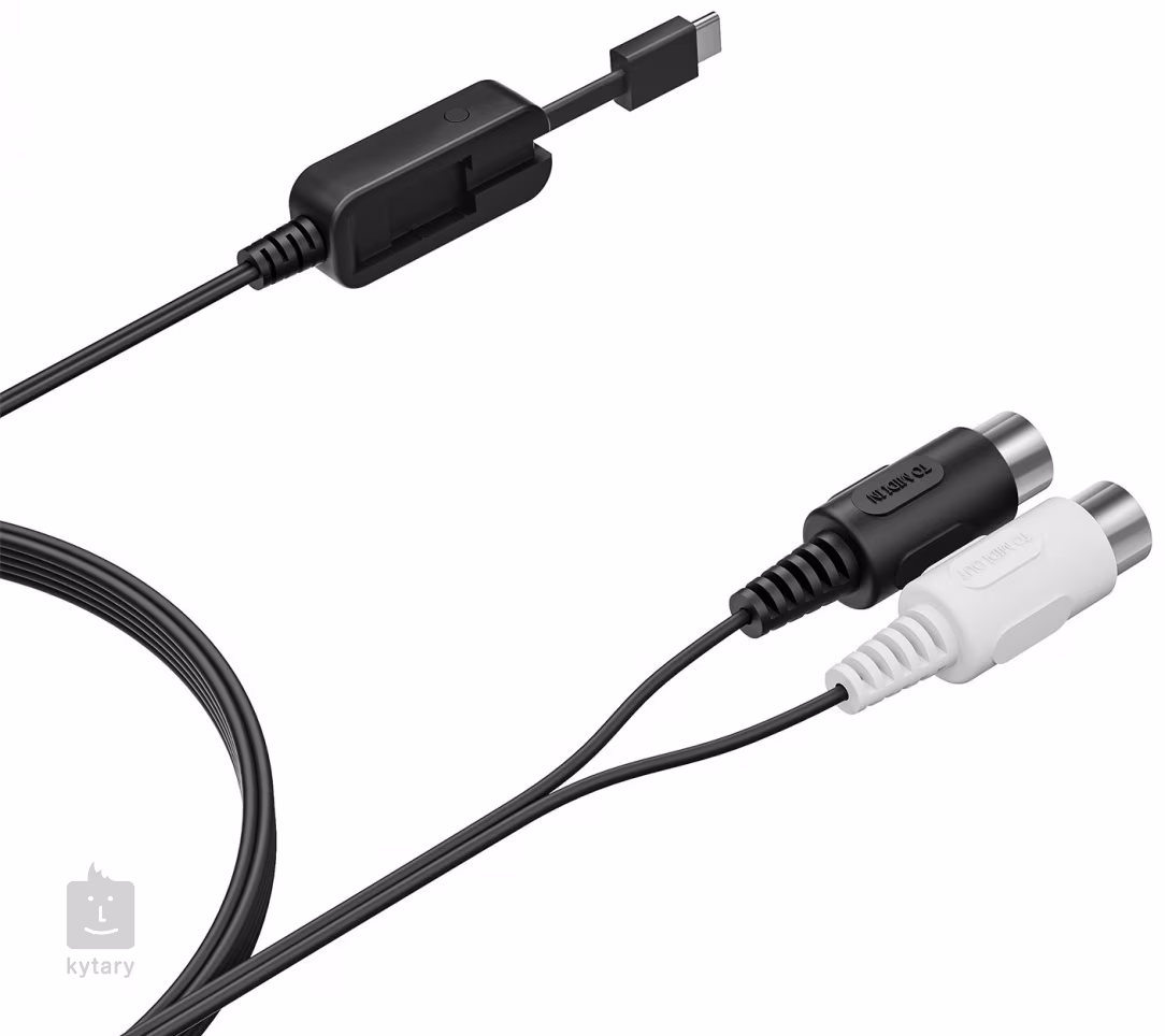Mit diesem Kabel können Sie Ihre HW, die mit einer analogen MIDI-Schnittstelle ausgestattet ist, ganz einfach über USB-C mit Ihrem Computer verbinden. Es ist auch möglich, zwei HW-Einheiten mit nur 5-poligen DIN-MIDI-Kabeln zu verbinden und nur die Filter + Mapper-Funktion zu verwenden.