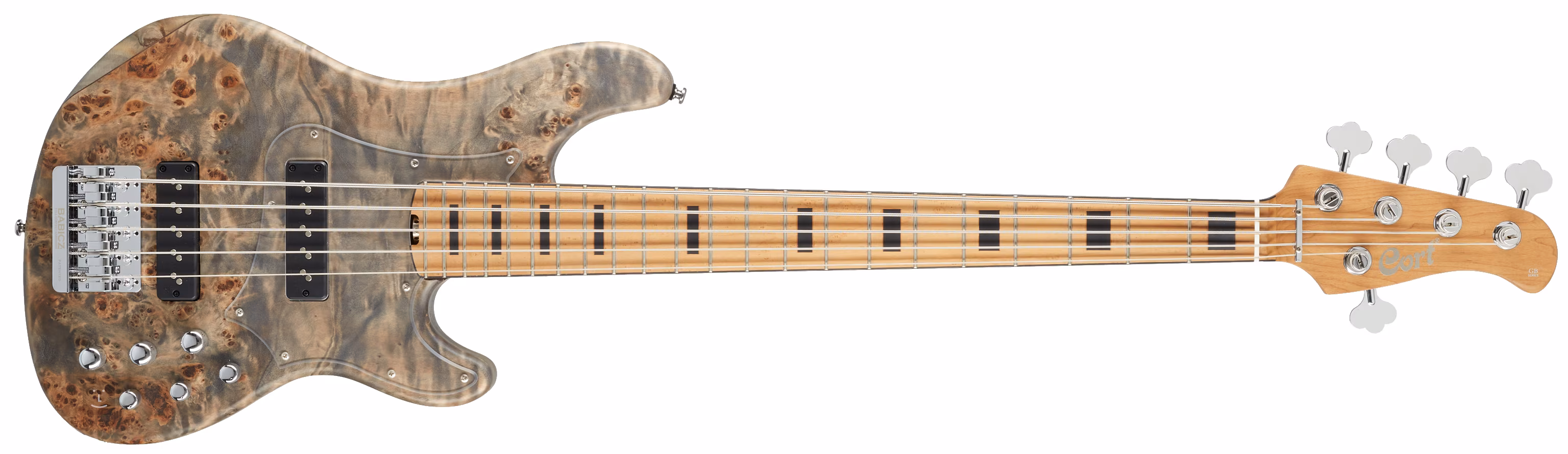 Der Korpus des Instruments besteht aus einem mittleren Ahornblock und "Flügeln" aus Paulownia-Holz, was dem Instrument ein sehr angenehmes Gewicht und gleichzeitig hervorragende akustische Eigenschaften verleiht. Die einzigartige Ästhetik des Instruments wird durch die Decke aus Pappelwurzel oder eine Schicht aus Weißesche auf dem Boden bestimmt. Der Korpus ist dann mit einem Hals aus gebranntem Ahorn verschraubt, der im Vergleich zu traditionellem Ahorn eine größere Stabilität, bessere Klangeigenschaften und auch einen stilvollen Vintage-Touch aufweist. Das Griffbrett ist ebenfalls aus gebranntem Ahorn gefertigt und verfügt über 22 Bünde, schwarze Block-Positionsmarker oder leuchtende Luminlay-Positionsmarker auf der Decke.