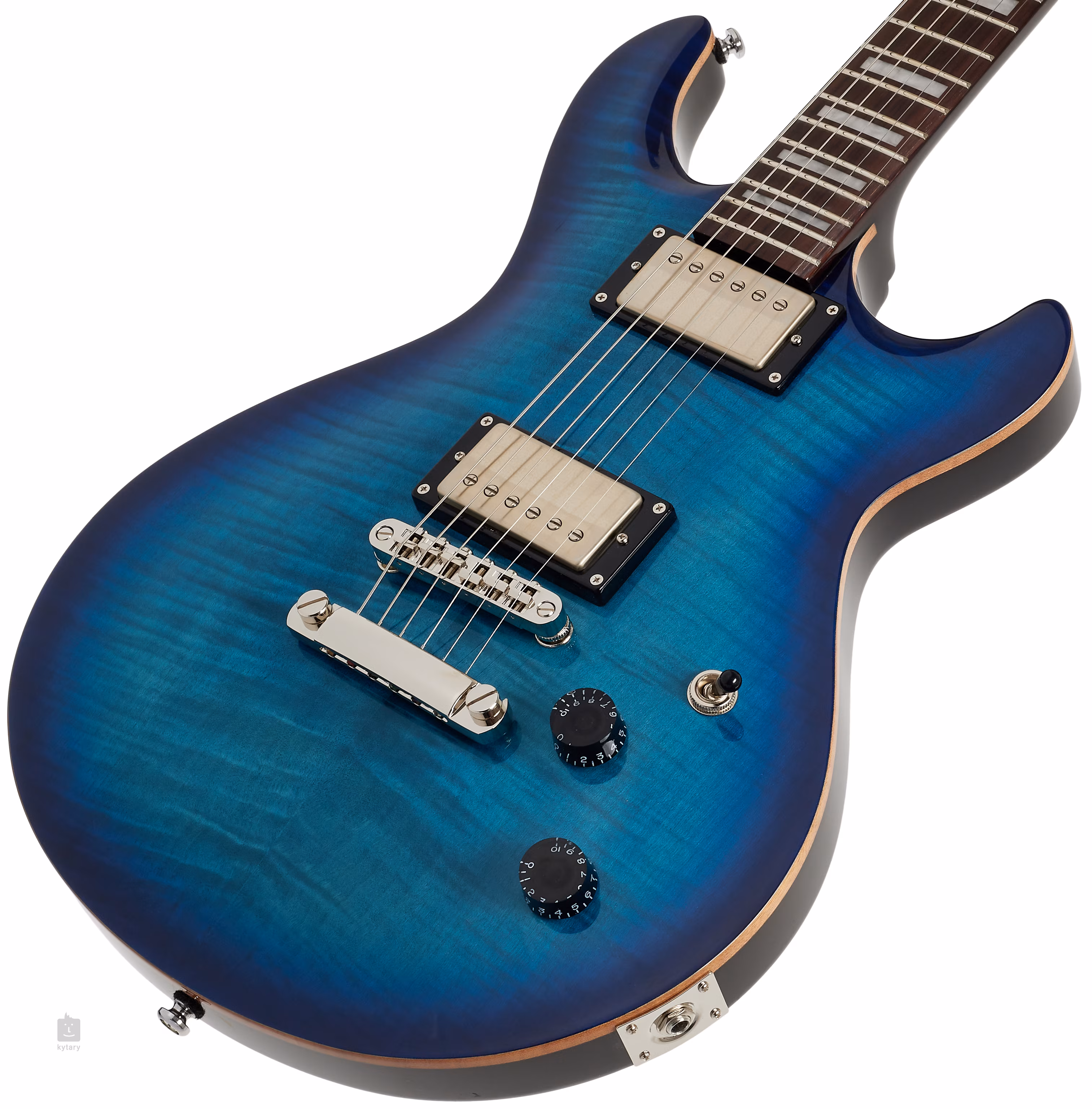 Der Mahagoni-Korpus der M600 BB ist mit einem geflammten Ahorn-Deckfurnier verziert. Die Maserung des Holzes wird durch eine Glanzlackierung und eine Blue Burst-Lackierung betont. Ein Palisandergriffbrett mit zweiundzwanzig Bünden ist auf einen Ahornhals mit komfortablem C-Profil geleimt. Die Orientierung auf dem Griffbrett wird durch weiße Perlmutt-Positionsblöcke erleichtert.