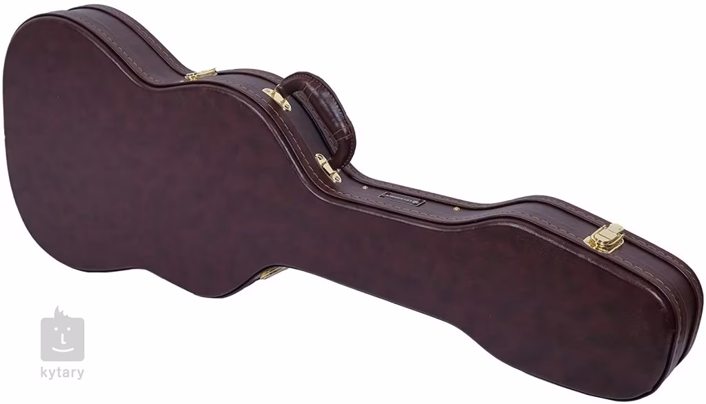 Das Innere des Koffers ist mit weichem Plüsch gefüttert und reichlich gepolstert, so dass die Gitarre perfekt vor Stößen und Kratzern geschützt ist. Ein großes Innenfach dient zur Aufbewahrung von Zubehör, in dem Stimmgerät, Saiten, Kapodaster und andere wichtige Utensilien sicher verstaut werden können. Der weiche, mit Leder überzogene Griff ist leicht zu tragen und liegt gut in der Hand. Das luxuriöse Design des Koffers wird durch elegante Bronzebeschläge akzentuiert und macht ihn nicht nur zu einem praktischen, sondern auch zu einem ästhetischen Accessoire für den sicheren Transport der Gitarre.