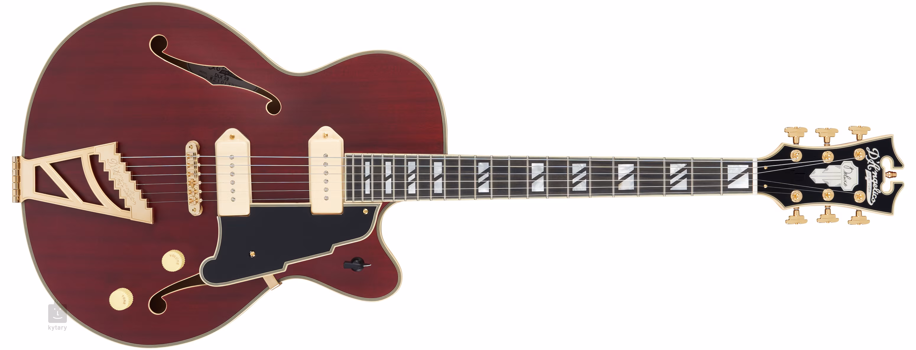 Der Korpus der Gitarre wird durch die für das Unternehmen charakteristische Art-Déco-Kopfplatte mit Perlmutteinlage und Firmenlogo ausgeglichen. Stabile Stimmung und gutes Sustain werden durch die Befestigung der Saiten durch den Knochen-Nullbund in Grover 509 Super Rotomatic Locking Mechaniken und durch das TOM-Saitenbrett im Streicher- und Art Deco-Stil garantiert. Die luxuriöse Verarbeitung der Gitarre wird durch eine satinierte, halbtransparente Lackierung, mehrlagiges Korpus-, Griffbrett- und Kopfplatten-Binding, ein fünflagiges Scalini-Schlagbrett, goldene Hardware und Vintage-Akzente in Form von Cupcake-Potentiometerkappen oder Pickup-Schaltern im Chickenhead-Design unterstrichen.