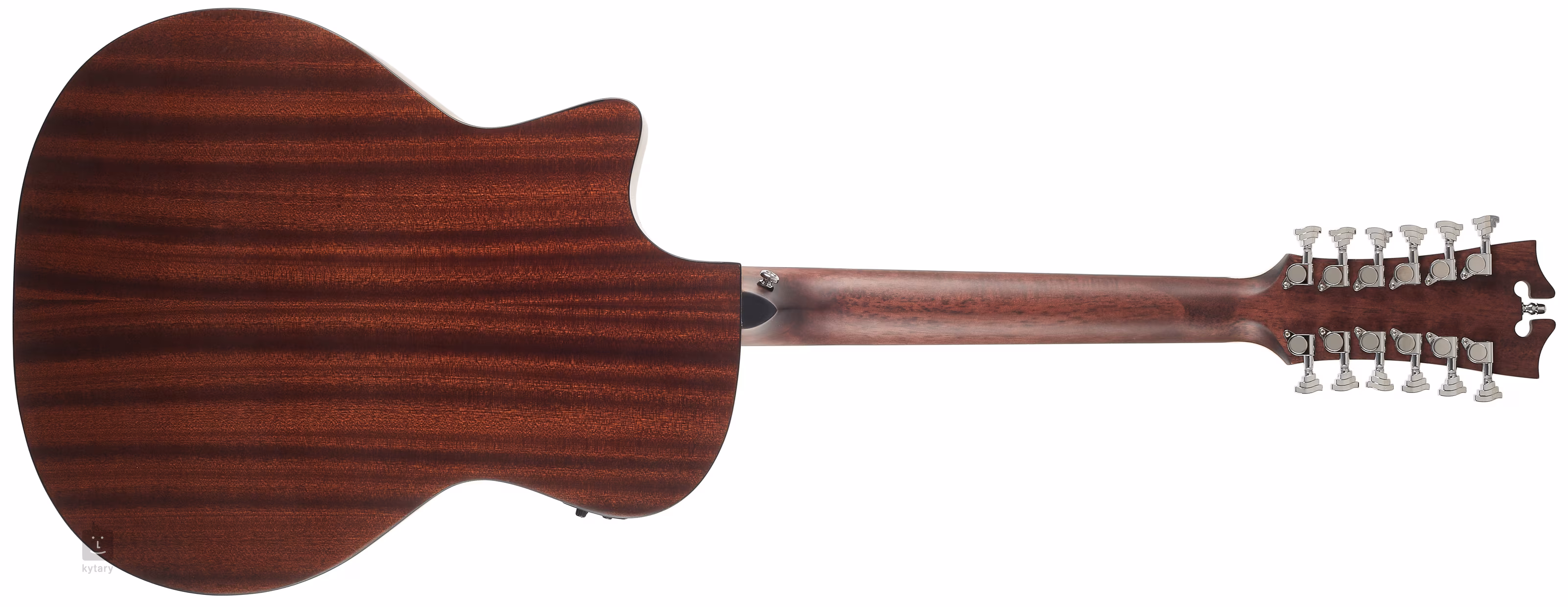 Der Korpus des Instruments ist aus laminiertem Mahagoni gefertigt. Der Mahagoni-Hals mit "C"-Profil ist auf ein Griffbrett aus wärmebehandeltem Merbauholz (torrefied) geklebt, das mit 20 Medium-Jumbo-Bünden ausgestattet ist. Die Orientierung auf der Oberfläche wird durch Positionspunkte aus Perlmuttimitation erleichtert. Das schmalere Halsprofil und der niedrigere Korpusausschnitt garantieren einen leichten Anschlag und eine geschmeidige Bewegung der Hand über die gesamte Oberfläche des Griffbretts. Die guten akustischen Eigenschaften der Gitarre werden durch die reduzierte X-Riffelung (Scalloped X) unterstützt.