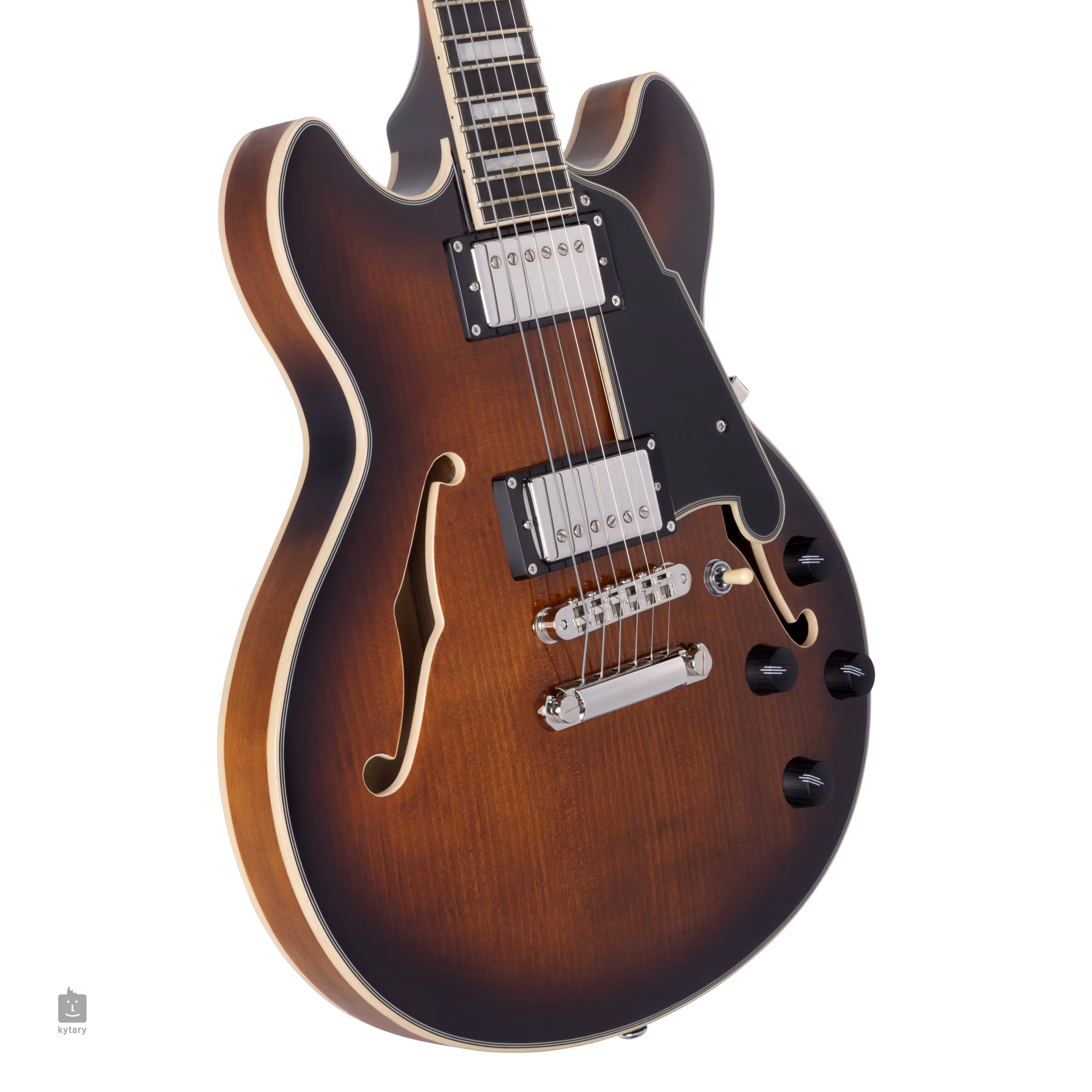 Der Korpus der Gitarre wird durch die für das Unternehmen charakteristische Art-Déco-Kopfplatte mit Perlmuttintarsie und Firmenlogo ausgeglichen. Stabile Stimmung und gutes Sustain werden durch die Befestigung der Saiten durch den Graphtech NuBone XL Nullbund in der Grover 109 Super Rotomatic und durch die TOM-Brücke im Halsstab garantiert. Der stilvolle Look der Gitarre wird durch das Korpus-, Griffbrett- und Kopfplatten-Binding und das fünflagige Scalini-Schlagbrett unterstrichen.