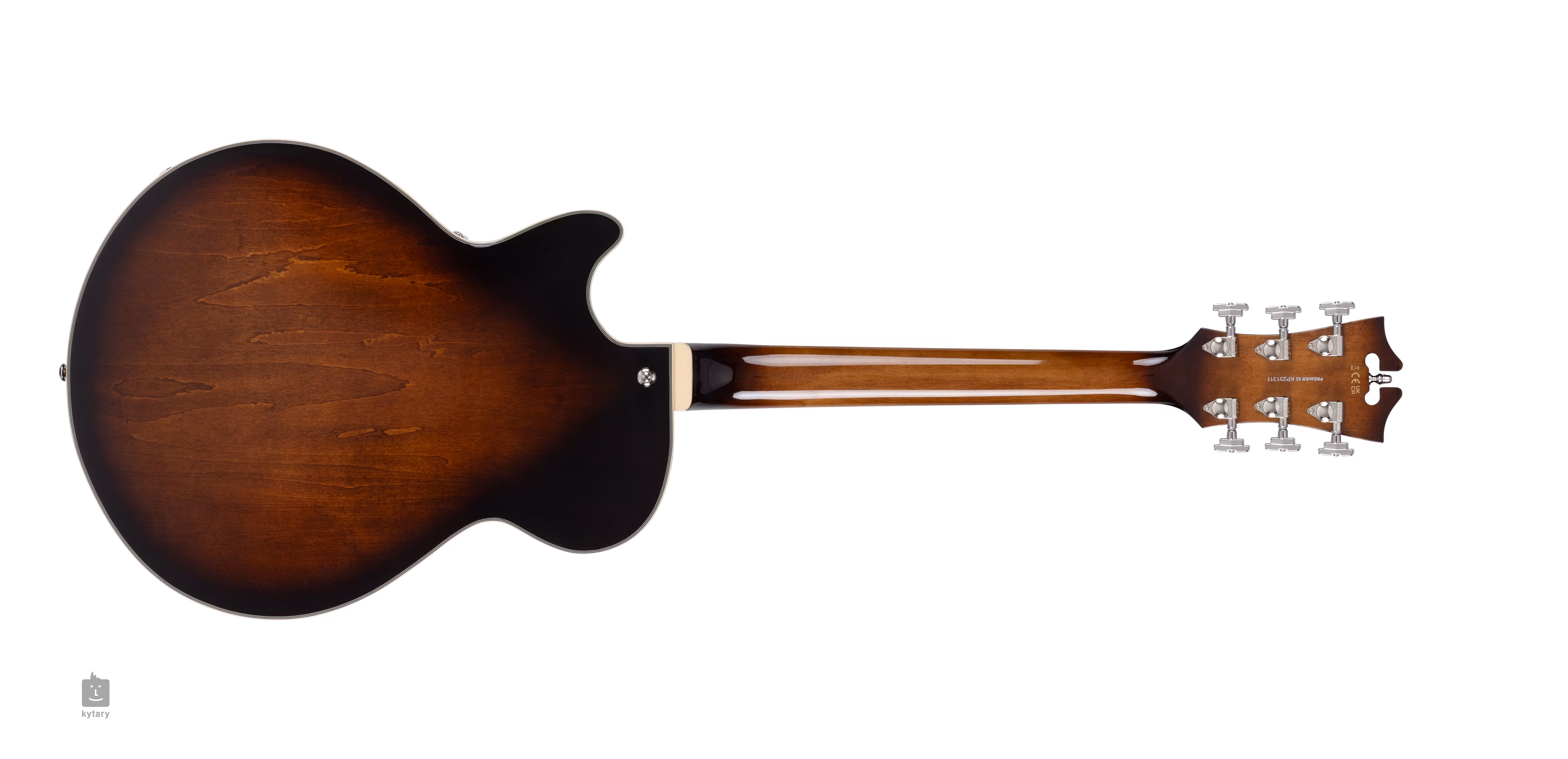 Die Halbbogenkonstruktion der PREMIER SS Brown Burst besteht aus einem laminierten Ahornboden und -zargen, einer Fichtenfurnierdecke und einem Mittelblock. Auf den Ahornhals ist ein Pau-Ferro-Griffbrett mit zweiundzwanzig Medium-Vintage-Bünden geleimt. Das schmale C-Profil des Halses sorgt für eine geschmeidige Fingerbewegung auf dem Griffbrett und einen bequemen Griff, während die Orientierung auf dem Griffbrett durch Positionsblöcke aus Perlmuttimitat erleichtert wird.