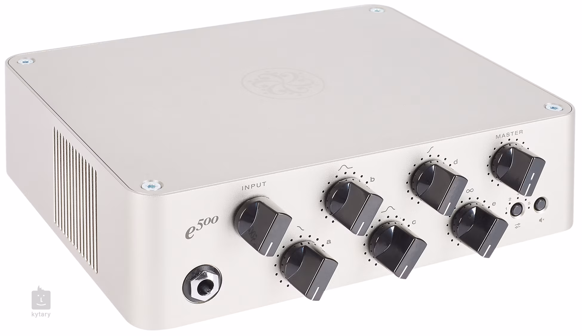 Auf der minimalistischen Vorderseite dieses sehr kompakten Verstärkers finden Sie neben den Reglern für die Gesamtlautstärke und das Eingangssignal auch fünf Potentiometer zur Steuerung der Klangregelung, die Sie zur Steuerung beliebiger Parameter zuweisen können, wenn Sie eine App anschließen. Darüber hinaus finden Sie einen Preset-Schalter und eine Mute-Funktion, die auch den integrierten Tuner einschaltet.