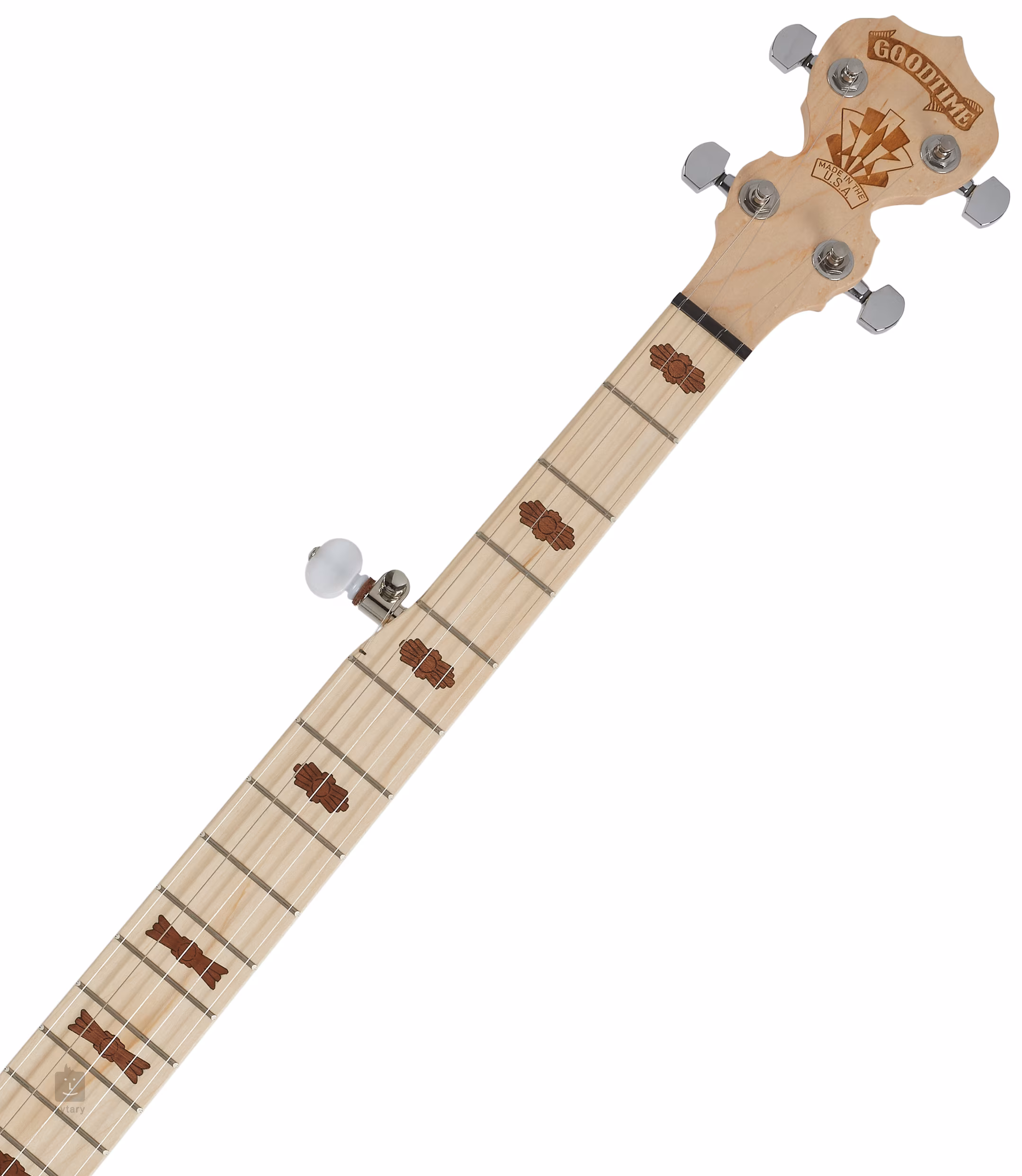 Das Basismodell des fünfsaitigen Goodtime-Banjos gehört zu den so genannten Open-Back-Instrumenten, d.h. einem Banjo ohne Resonanzkörper mit offener Bodenplatte. Sein Klang kann in einer Vielzahl von Stilrichtungen von Bluegrass über Folk bis Jazz eingesetzt werden. Mit einem Gewicht von unter zwei Kilogramm ist es ein tolles Instrument für Kinder und ein praktischer Begleiter für Reisen, Urlaub usw.