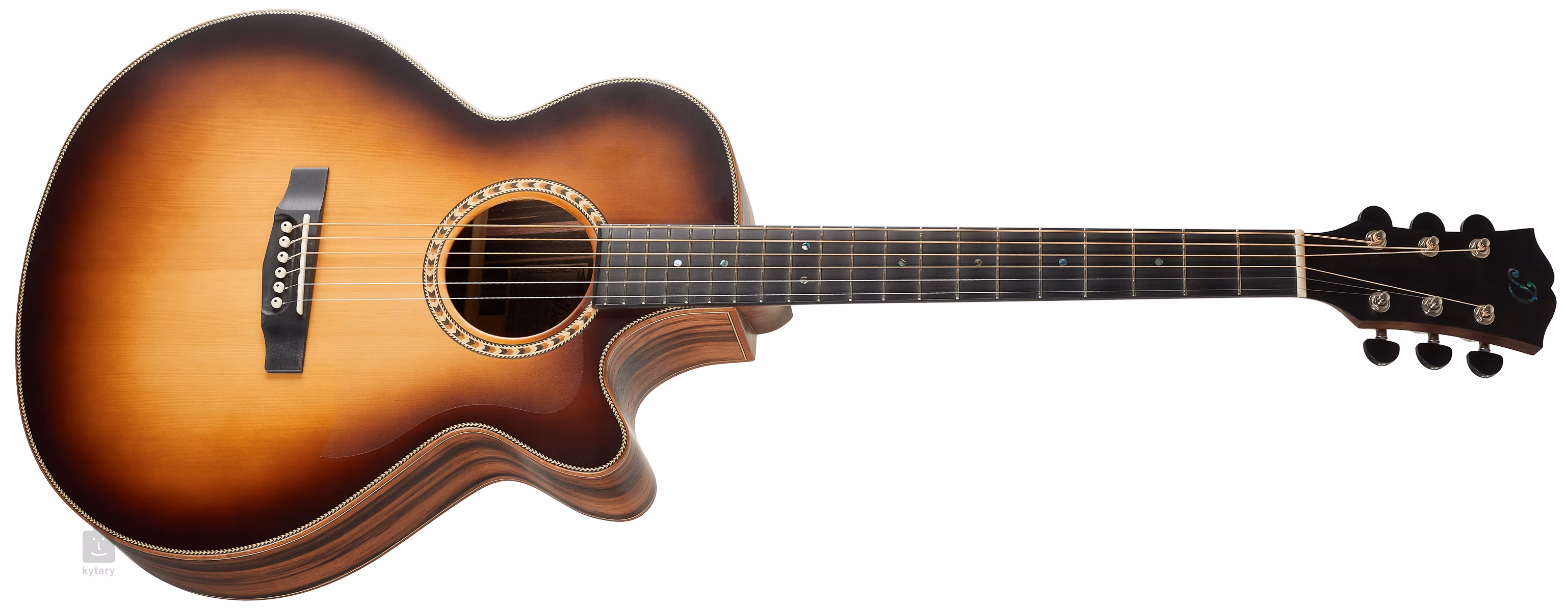 Die Dowina Danubius GAC-LB ist eine Akustikgitarre vom Typ Grand Auditorium, die von Gitarristen, die lieber mit Fingertechnik und Tonabnehmern spielen, gleichermaßen geschätzt werden wird. Die Vorderseite der Gitarre ist aus massivem Zedernholz gefertigt, während Boden und Zargen aus geschichtetem exotischem Makassar-Ebenholz bestehen. Ein Cutaway im unteren Bereich des Korpus erleichtert das Anschlagen in den höheren Lagen des Griffbretts. Der natürliche Klang des Instruments wird durch die offenporige Lackierung noch verstärkt.