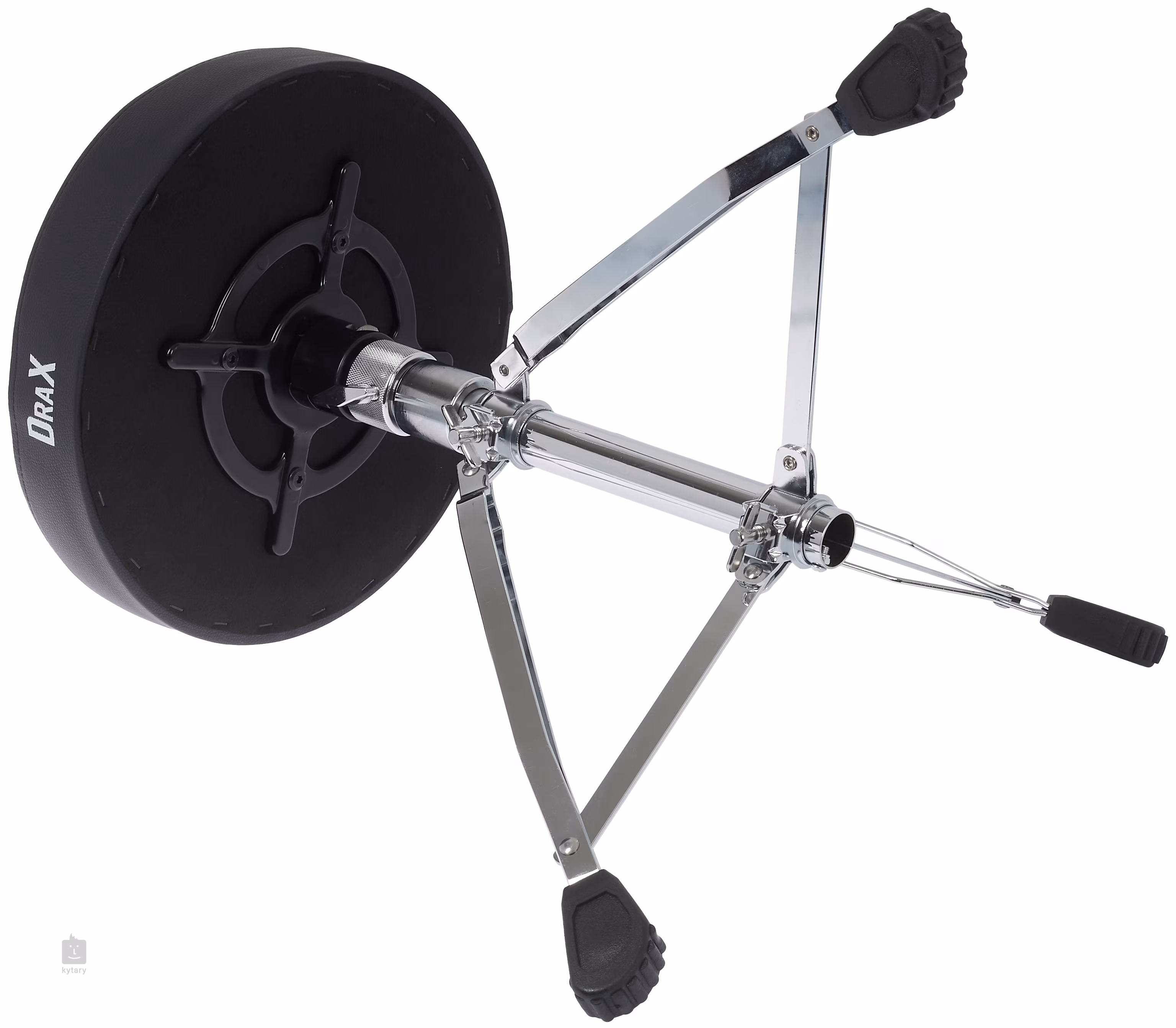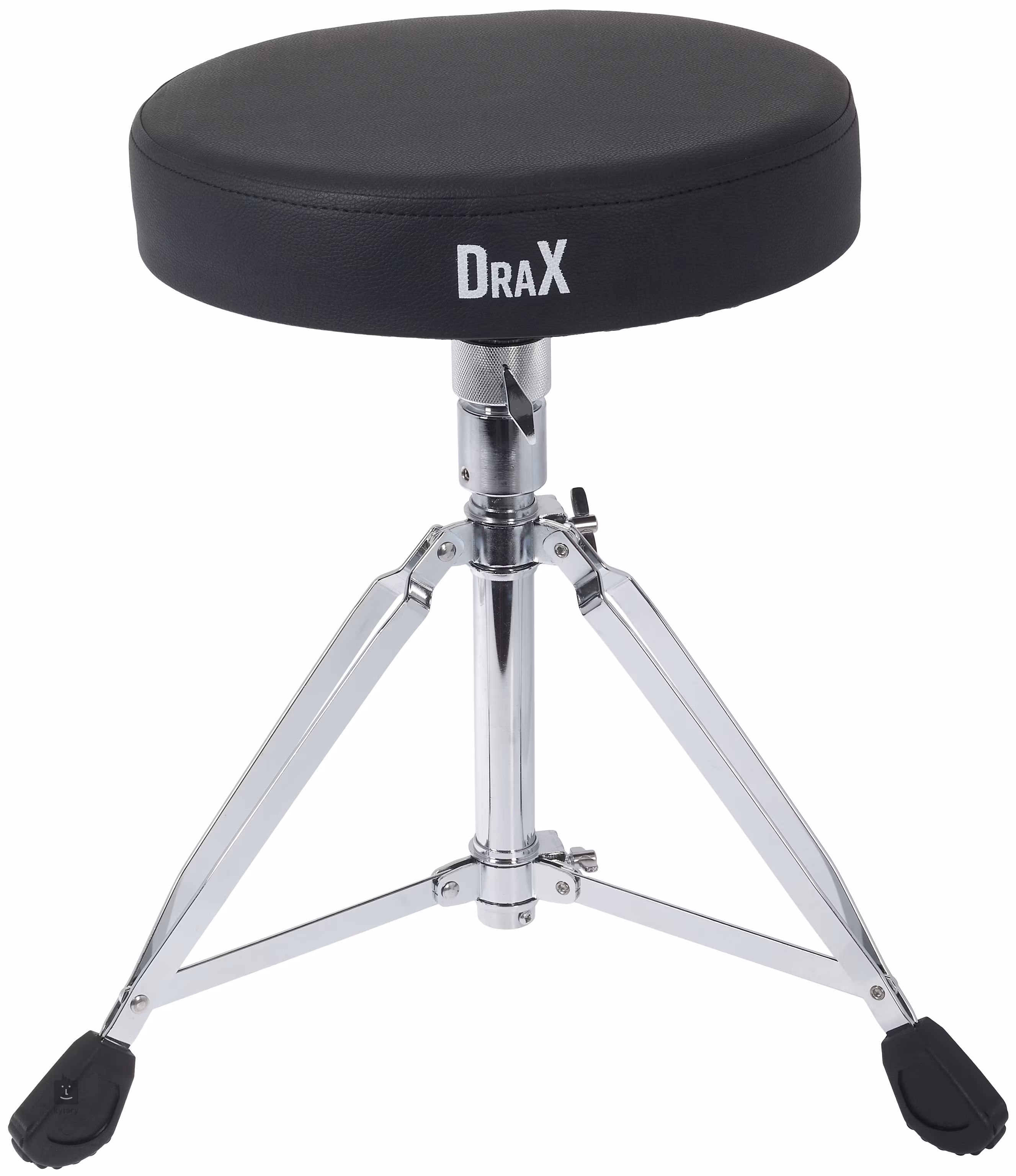 Der Drax JKT130 ist ein runder Trommelsitz mit einem zusätzlichen Schraubmechanismus für eine noch präzisere und sichere Höheneinstellung. Die robuste Konstruktion und die rutschfesten Beinenden sorgen für einen festen Halt, während das Kunstleder-Sitzkissen einen bequemen Sitz für längeres Spielen bietet. Ein zuverlässiger Partner für jeden Schlagzeuger.