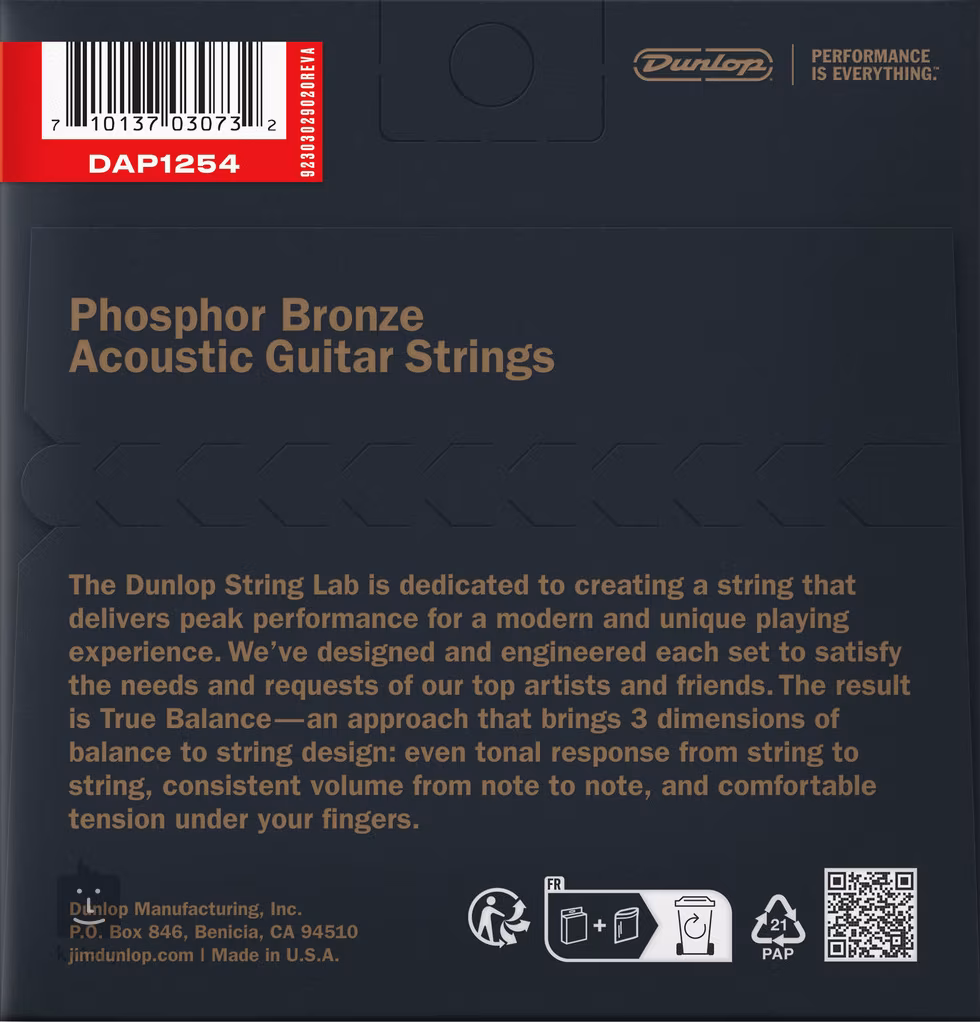 Dunlop Akustikgitarren-Saiten liefern einen brillanten Klang mit soliden Bässen, klaren Höhen und dynamischer Ansprache. Perfekt für das Spiel mit Plektrum und Fingern. Die Saiten in diesem Satz sind mit der beliebten Phosphorbronze-Legierung umsponnen, die ihnen einen warmen, runden Ton verleiht. Die Serie wird Sie mit präziser Handwerkskunst, langer Lebensdauer und ausgewogenem Klang begeistern. Ob Sie Rock, Pop, Metal, Blues oder Country spielen, Dunlop-Saiten werden Sie sicher nicht enttäuschen. Außerdem wird jeder Satz mit der VCI Fresh Technology speziell verpackt, um sicherzustellen, dass die Saiten so frisch sind wie am ersten Tag.