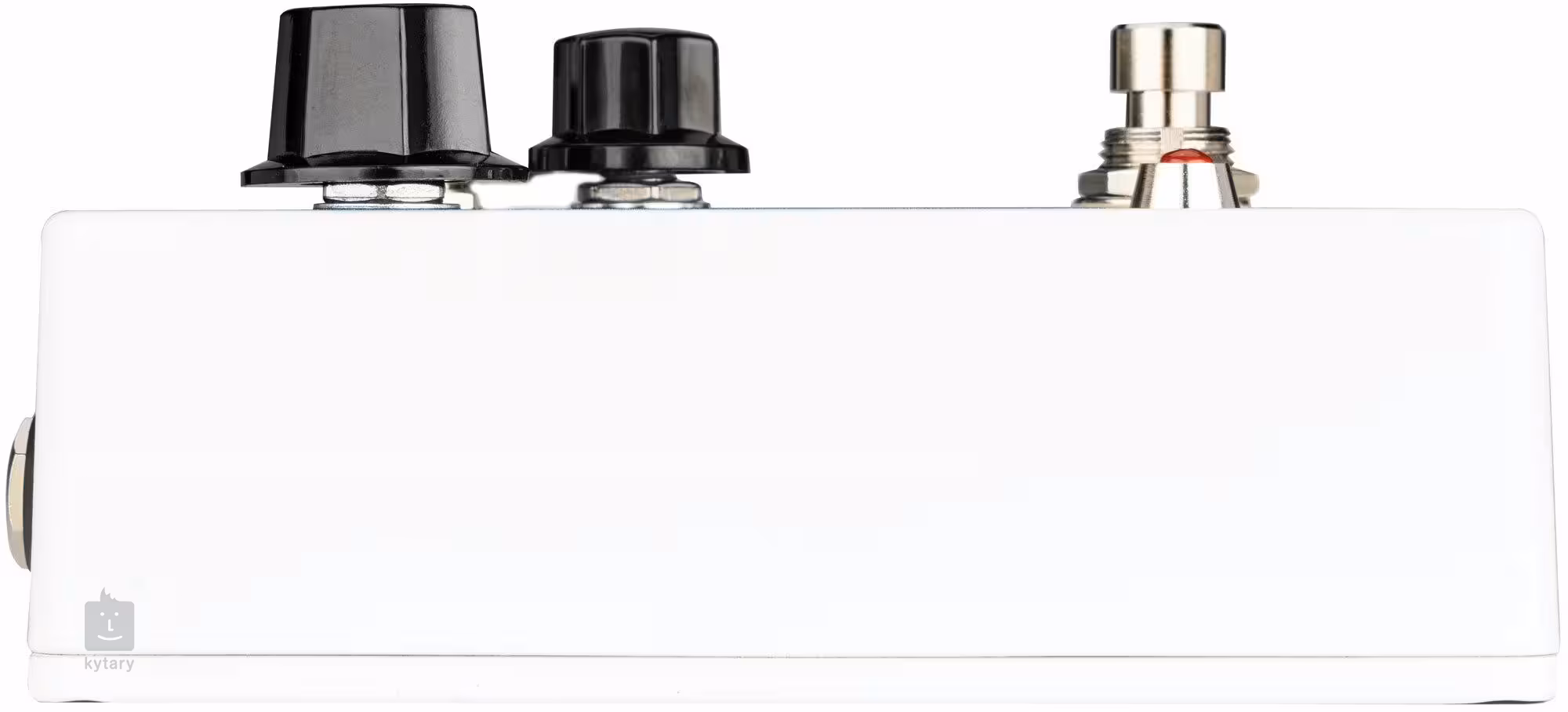 Auf dem Bedienfeld finden Sie einen Level-Regler, mit dem Sie die Lautstärke des Effekts einstellen können, einen Sustain-Regler, mit dem Sie den Sustain- und Distortion-Pegel addieren oder subtrahieren können, und einen Tone-Regler, mit dem Sie den Frequenzgang einstellen können. Außerdem gibt es einen Tone On/Off-Schalter, der mit dem Tone Aperture-Regler verbunden ist und mit dem Sie diesen vollständig umgehen können, um einen Sound mit akzentuierten Mitten zu erhalten. Die Box ist als True Bypass verkabelt und wird über ein 9V-Netzteil (nicht im Lieferumfang enthalten) mit Strom versorgt. Die gesamte Elektronik ist in einem soliden Metallgehäuse untergebracht.